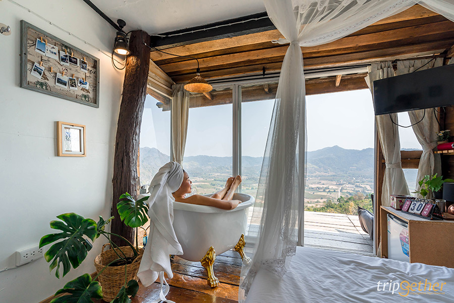 The Terrace View Resort ที่พักสวยที่ตกแต่งสไตล์นอร์ดิก ที่ตั้งอยู่บนเนินเขาสูงสามารถชมวิวและสูดอากาศบริสุทธิ์แบบ 180 องศา มีห้องพักใหม่เพียบพร้อมระเบียงหน้าห้องพักที่กว้างขวาง โดยแต่ละห้องหันหน้าเข้าหาวิวสวยของขุนเขาที่โอบล้อมไปด้วยธรรมชาติสุดผ่อนคลาย นอกจากนี้ยังมีอ่างอาบน้ำริมระเบียงนอนแช่น้ำไปมองวิวทะเลหมอกไปฟินมาก และยังมีเปลตาข่ายที่หน้าห้องพักให้ออกมานอนฟินๆ ด้วย ใครที่กำลังมองหาที่พักสวยวิวดี บรรยากาศเด็ดต้องแวะมาเลย!
