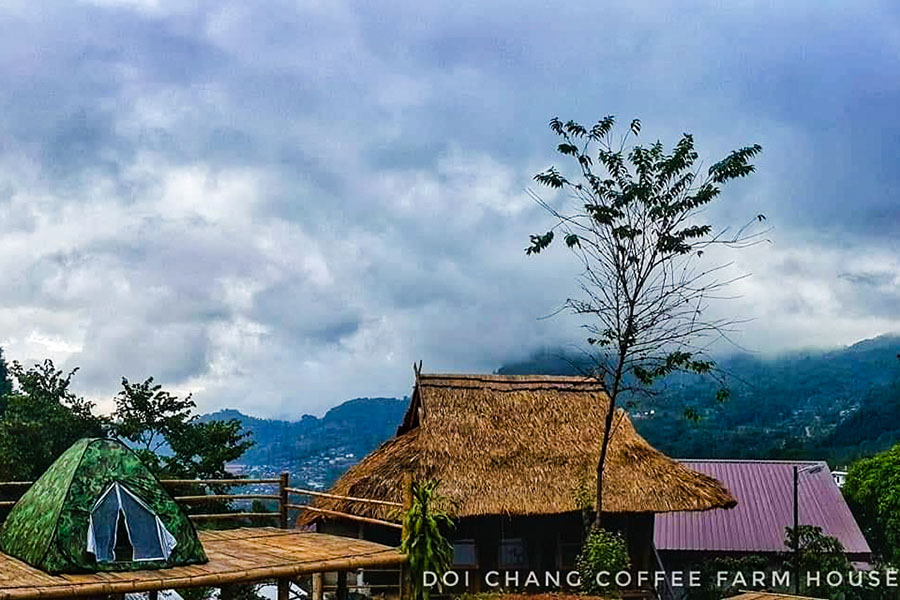 ดอยช้าง คอฟฟี่ ฟาร์ม เฮ้าส์ (Doi Chang Coffee Farm House) อีกหนึ่งที่พักดอยช้างอากาศดี วิวสวย มีทุ่งดอกไม้ให้ได้ดื่มด่ำไปกับความสงบและธรรมชาติรอบตัว ที่พักมีทั้งแบบห้องพักพร้อมเครื่องอำนวยความสะดวกต่างๆ หากใครอยากนอนเต็นท์แบบลุยๆ ทางที่พักก็มีบริเวณกางเต็นท์ให้ฟินไปกับอากาศที่ลดลงจนเหลือเลขตัวเดียว แล้วตื่นมาสัมผัสหมอกยามเช้าพร้อมจิบกาแฟดอยช้างที่ขึ้นชื่อ ยิ่งไปช่วงที่มีดอกพญาเสือโคร่งบานสะพรั่ง เรียกว่าเป็นซากุระเมืองไทยที่ไม่ต้องไปไกลถึงญี่ปุ่นคุ้มค่ากับการไปพักผ่อนหย่อนใจมาก