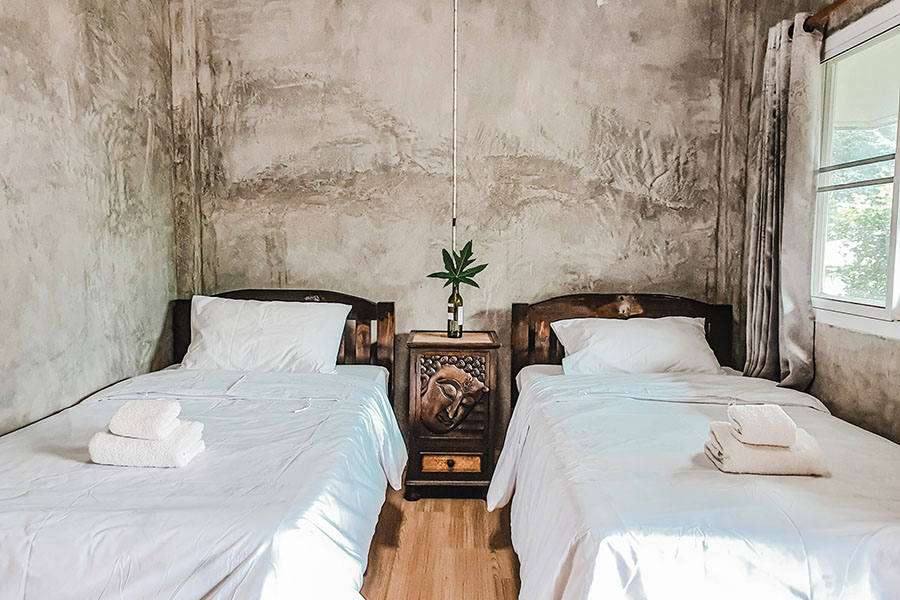 -ราคาห้องพักแบบบ้านแฝดปูน Low Season 1,000 บาท High Season 1,200 บาท