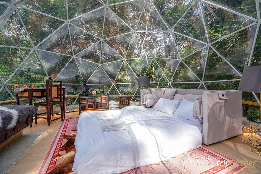 ไปนอนแช่อ่างฟินๆ กันต่อที่เชียงรายกับ Abonzo Paradise ที่พักวิวสวยบนดอยช้าง ตัวที่พักเป็นเต็นท์โดมใสที่สามารถเห็นภูเขาแบบปังๆ และมีกลิ่นอายของความเป็นญี่ปุ่นจากการตกแต่งและดีไซน์ ใครที่ได้มาพักที่นี่บอกเลยว่าฟีลดีสุดๆ ความพิเศษของที่นี่คือมีห้องพักเพียงแค่ 4 หลังเท่านั้น มีการแบ่งโซนพื้นที่แต่ละหลังอย่างชัดเจนทำให้มีความส่วนตัวอย่างมาก ภายในที่พักกว้างขวางมากมีพื้นที่นั่งเล่น มีห้องน้ำแยกออกจากตัวเต็นท์ และมีโซนอางอาบน้ำแบบเอาท์ดอร์ยื่นออกไปใครที่อยากแช่อ่างชิลล์มองวิวสวยๆ จะต้องถูกใจแน่นอน