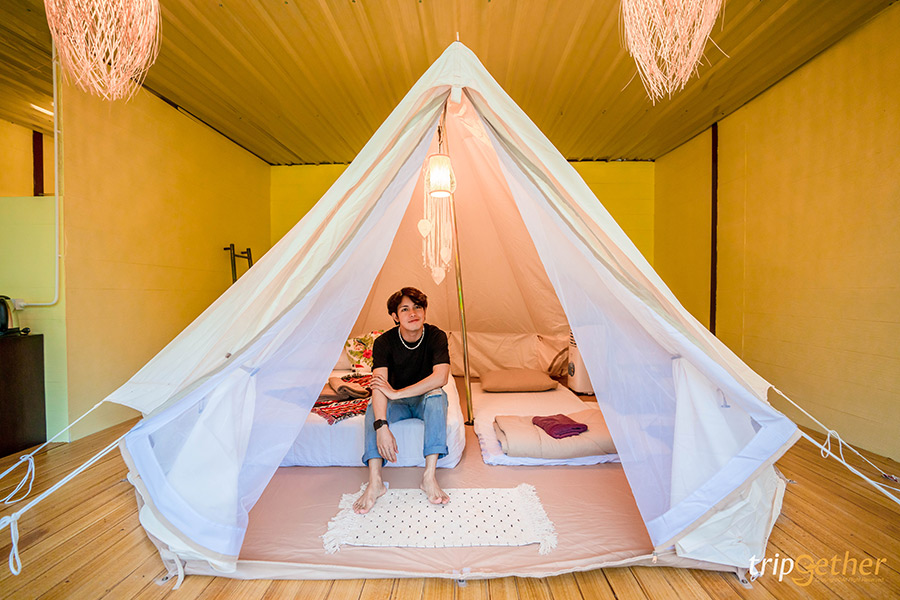 มาต่อกันที่ เจอเขาโฮมสเตย์ ที่พักบรรยากาศดีๆ ในอำเภอแม่แตง จังหวัดเชียงใหม่ ไม่ว่าจะมองไปทางไหนก็เจอแต่ภาพของภูเขาเรียงราย ที่พักแบบเต็นท์กระโจมสไตล์แคมป์ปิ้งติดแอร์ ตัวที่พักหันหน้าออกรับกับวิวสวยๆ พร้อมอ่างเอาท์ดอร์ให้แช่แบบฟินๆ ได้พักผ่อนดื่มด่ำธรรมชาติกับอากาศเย็นสบาย นอกจากนี้ยังมีเปลตาข่ายให้นอนเล่นหรือถ่ายรูปมุมนี้ก็สวยไม่แพ้กัน และฟินให้สุดกับหมูกระทะแสนอร่อยท่ามกลางอากาศเย็นๆ ของแม่แตง ถ้าใครพร้อมเก็บกระเป๋าจองที่พักแล้วไปสัมผัสกับวิวสวยๆ ที่เจอเขาโฮมสเตย์