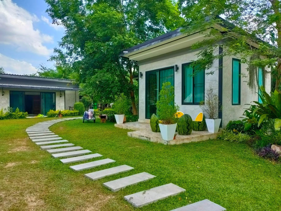บ้านสวนงาม ที่พักโลเคชั่นสุดว้าวเพราะถูกโอบล้อมด้วยภูเขามองไปทางไหนก็เจอแต่สีเขียวของต้มไม้ที่บอกได้เลยว่าสดชื่นเหมาะกับการหนีความวุ่นวายมาพักผ่อนเป็นที่สุด ที่สำคัญบ้านสวนงายังอยู่ติดริมน้ำอีกด้วย แอบกระซิบว่าลำธารที่ติดกับตัวที่พักน้ำใส เย็นสบายสามารถแช่น้ำ ลอยคอ ไกวชิงช้าเอาขาจุ่มน้ำได้อย่างเพลิดเพลิน ส่วนของบ้านพักมีให้เลือกหลากหลายประเภททั้ง แบบบ้าน แบบโดม แบบกระโจม แบบเต็นท์ และแบบรถบ้าน หรือชาวแคมป์เปอร์คนไหนอยากนำเต็นท์มากางเองที่นี่ก็มีพื้นที่สำหรับกางเต็นท์ด้วยเหมือนกัน ที่สำคัญไม่ต้องห่วงเรื่องอาหารการกินกันเลยเพราะบริเวณที่พักมีร้านอาหารตามสั่งเปิดให้บริการ เรียกได้ว่าเป็นที่พักที่สะดวกสบายเหมาะแก่การมาพักผ่อนสุดๆ