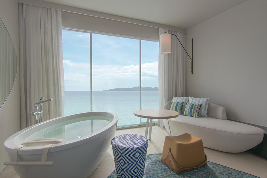 มาถึงที่พักหรูริมทะเลที่สุดท้ายบนหาดจอมเทียนอย่าง Veranda Resort Pattaya Na Jomtien – MGallery ตัวที่พักได้ถูกออกแบบมาอย่างมีเอกลักษณ์และโดดเด่นภายใต้คอนเซ็ปต์ Lifestyle By The Sea ทำให้ที่พักมีกลิ่นอายความทันสมัย เรียบง่าย และสบายตา ดูเข้ากับบรรยากาศของท้องทะเล นอกจากนี้ห้องพักของที่นี่ก็ออกแบบมาสำหรับสายโซเชียลโดยเฉพาะสามารถถ่ายรูปสวยๆ ได้ตั้งแต่ในห้องนอน หรือจะเป็นมุมไฮไลท์สระว่ายน้ำอินฟินิตี้พูลที่มองเห็นภาพท้องทะเลสุดลูกหูลูกตา อีกทั้งยังมี I Sea Sky ที่เป็นบาร์รูฟท็อป จากมุมนี้สามารถดูพระอาทิตย์ตกดินได้แบบพาโนรามา บอกเลยว่าสุดชิลล์และโรแมนติกมาก