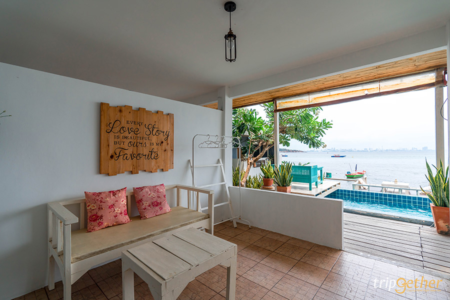 บ้านทะเลสวย ที่พักยื่นลงทะเลวิวพาโนราม่าสุดชิลล์บนเกาะล้าน ตั้งอยู่ไม่ไกลจากท่าหน้าบ้านและสามารถเดินทางไปเที่ยวที่หาดตายายโดยใช้เวลาเพียง 5 นาทีเท่านั้น ส่วนของห้องพักมีให้เลือกทั้งแบบ 2 คน ไปจนถึงห้องแบบ 4 คน เพราะฉะนั้นไม่ว่าจะมาเป็นคู่หรือกลุ่มเพื่อน ครอบครัว ก็เข้าพักได้แบบสบายๆ บริเวณบ้านพักยังมีพื้นที่ส่วนกลางกว้างขวางให้นั่งชิลล์ มองวิวทะเล หรือใครชอบตกหมึก ตกปลา สามารถเตรียมอุปกรณ์มาตกกันได้เช่นกัน ที่สำคัญที่พักยินดีต้อนรับสัตว์เลี้ยงตัวเล็กๆ พาน้องหมาหรือน้องแมวมาเที่ยวทะเลกับคุณได้อีกด้วย