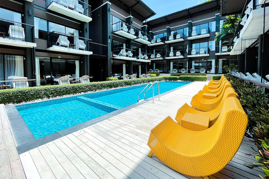 La Lune Beach Resort ที่พักบนอ่าววงเดือน ติดทะเล พร้อมสระว่ายน้ำ ให้คุณได้มาสัมผัสกับหาดทรายขาว น้ำทะเลใสๆ บรรยากาศริมทะเลกับครอบครัว กลุ่มเพื่อน หรือคนรัก ที่พักสไตล์โมเดิร์นเป็นอาคารที่มีสระว่ายน้ำอยู่ตรงกลาง มีเก้าอี้สีเหลืองเด่นตั้งอยู่รอบสระว่ายน้ำ ให้ผู้เข้าพักได้นั่งชิลล์ๆ ริมสระ และที่ชายหาดจัดโซนที่นั่งไว้อย่างสวยงามให้ได้นั่งชิลล์บนบีนแบคนุ่มๆ สบายๆ นั่งมองวิวทะเลตรงหน้าได้อย่างเพลิดเพลิน และที่ขาดไม่ได้ช่วงเย็นทางที่พักเปิดเป็นบาร์นั่งชิลล์ ดื่ม Cocktail เย็นๆ ริมทะเลความฟินระดับ 10