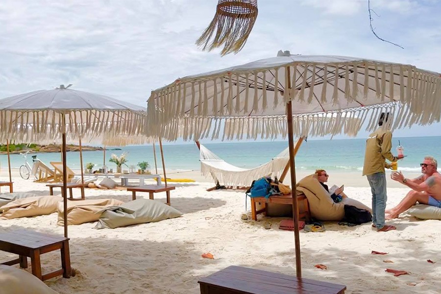 Tonsak Resort ที่พักแบบบังกะโลเป็นเรือนไม้บนหาดทรายแก้ว ที่เป็นหนึ่งในชายหาดที่นิยมที่สุดของเกาะเสม็ด เพราะมีหาดทรายสีขาวนวลตัดกับสีฟ้าของน้ำทะใสได้อย่างสวยงาม Tonsak Resor ยังมีจุดเด่นที่ร้านอาหารและคาเฟ่ที่ติดชายหาดคุมโทนด้วยสีน้ำตาลและสีขาวทำให้ดูสบายๆ สไตล์ริมทะเลบาหลี มีมุมให้ถ่ายรูปกันอย่างจุใจ มุมไหนก็สวย และถ้าใครชื่นชอบกิจกรรมทางน้ำที่ Tonsak Resor มีคายัคและซับบอร์ดไว้บริการ ใครเป็นสายเช็คอินชื่นชอบคาเฟ่สวยๆ ริมทะเล ต้องมาพักที่นี่เลยครบทั้งที่พักและที่กินในที่เดียว