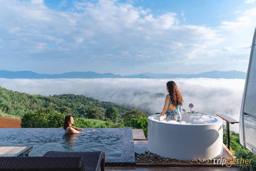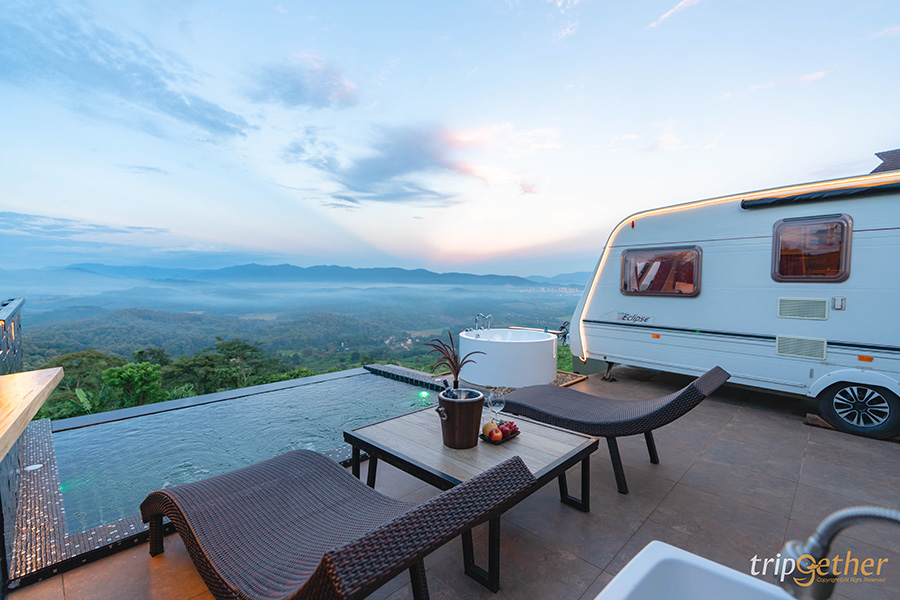 สตาร์ดอย คอฟฟี่ แอนด์ โฮมสเตย์ ที่พักเชียงรายบนเขาสุดหรูที่มาพร้อมกับวิวสุดอลังกาลของทะเลหมอกเหนือสามเหลี่ยมทองคำ และดื่มด่ำกับความงามของธรรมชาติทั้ง 3 ประเทศ ไทย ลาว และเมียนมา สำหรับห้องพักมีให้เลือกทั้งแบบเต็มท์โดมและรถบ้าน แต่ที่อยากจะแนะนำเลยก็คือรถบ้าน รถบ้านแต่ละคันจะมีระแนงไม้กั้นไว้ให้เป็นพื้นที่ส่วนตัว ภายในพื้นที่มีอ่างอาบน้ำ สระว่ายน้ำระบบเกลือ และห้องน้ำส่วนตัว ส่วนในรถก็นอนสบายด้วยเตียงขนาด 2 คนนอน แถมสิ่งอำนวยความสะดวกก็จัดเต็มจริงๆ นอกจากจะนอนสบายแล้ว สายคอนเทนต์ห้ามพลาดตื่นเช้ามาถ่ายรูปคู่อ่างอาบน้ำกับทะเลหมอก บอกเลยว่าได้รูปสวยปังกลับไปเพียบ