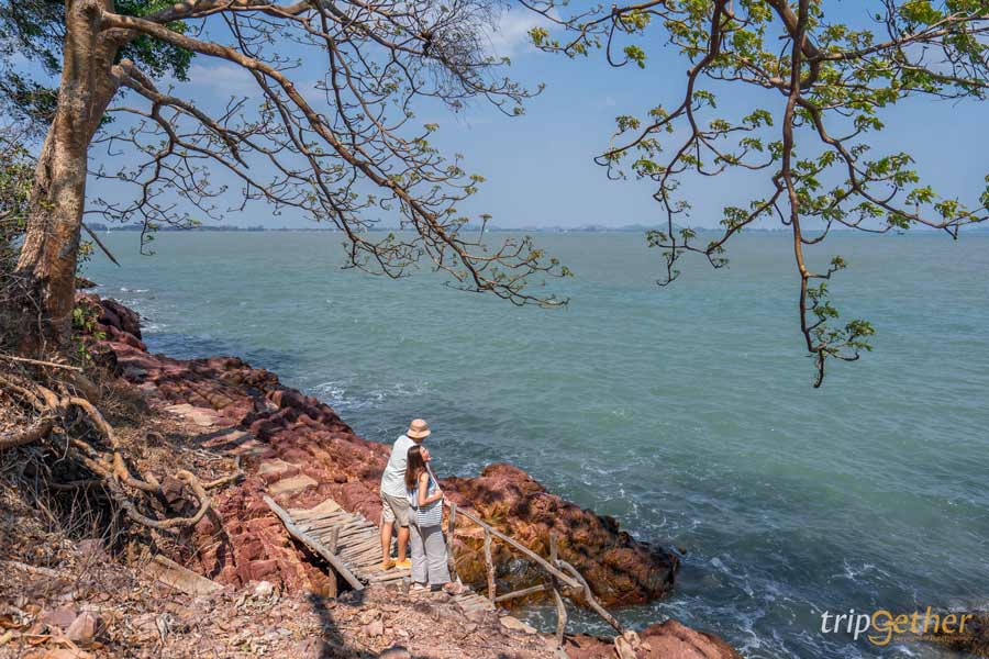 มาเริ่มกันที่ ลานหินสีชมพู ที่เที่ยวถ่ายรูปสวย ใกล้กรุงเทพ เป็นลานหินธรรมชาติริมทะเลมาพร้อมวิวธรรมชาติสวยๆ ที่นี่มีจุดเด่นคือลานหินสีชมพู หรือ หินทรายอาร์โคส (Arkosic Sandstone) ซึ่งมีส่วนผสมของธาตุเหล็กมาก เลยมีลักษณะเป็นสีแดงอมชมพู สีชมพูอมม่วง ไปจนถึงสีม่วงอมน้ำตาลแดง บอกเลยว่าถูกใจสายถ่ายรูปแน่นอน แถมบรรยากาศก็ชิลล์สุดๆ มีลมเย็นๆ พัดมาตลอด นอกจากนี้ยังมีเส้นทางศึกษาธรรมชาติอีกด้วยนะ