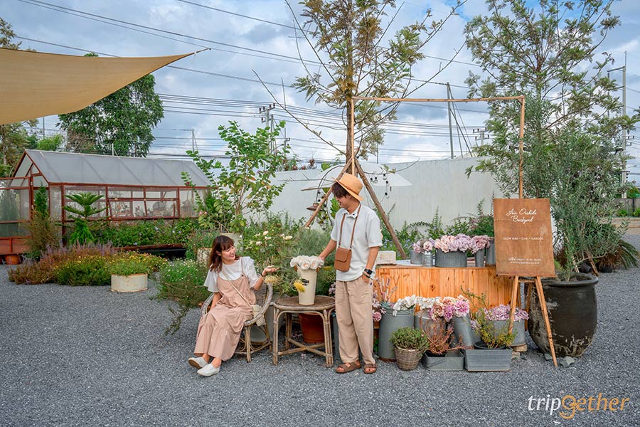 The Flask Cafe by Air Orchids ที่เที่ยวสุดกรีนที่คนรักต้นไม้ต้องเลิฟ ภายในร้านเป็นตลาดต้นไม้ มีขายทั้งต้นไม้ ดอกไม้ อุปกรณ์ทำสวน เรียกได้ว่าเป็นร้านที่ครบวงจรทุกเรื่องต้นไม้เลย นอกจากโซนขายต้นไม้ ยังมีโซนคาเฟ่กลางร้านที่ใครช้อปปิ้งเหนื่อยๆ ก็สามารถเดินมาพักผ่อนได้ในนี้ อีกทั้งยังเอาใจสายโซเชียลที่ชอบถ่ายรูปด้วยโซน Backyard โดยโซนนี้มีพร็อพชาวสวนน่ารักๆ ให้ได้ถ่ายรูปกับ บอกเลยว่าตรงนี้ให้ฟีลเหมือนเดินเล่นสวนหลังบ้านมาก