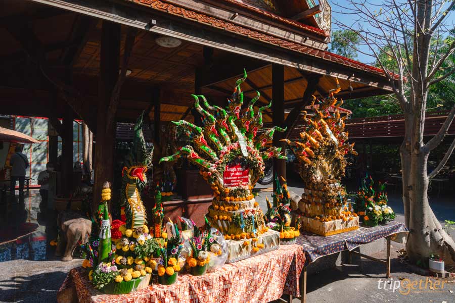 ถัดมากับ ที่เที่ยวปทุมธานี วัดดังที่ได้รับฉายาว่า คำชะโนด 2 อย่าง วัดป่าคลอง 11 เป็นวัดกลางน้ำที่มีรูปปั้นพญานาคขนาดใหญ่ที่สวยงามอย่างมาก มองแล้วดูลึกลับและน่าค้นหาสุดๆ โดยสามารถกราบไหว้ตามจุดที่วัดกำหนดไว้ได้เลย เริ่มจากการ สักการะบูชาพระสีวลี ต่อด้วย สักการะบูชาพญานาค 9 ตระกูล หลังจากนั้นก็เดินไปยัง อุโบสถกลางน้ำ เพื่อถวายเครื่องบายศรี เสร็จแล้วก็นำดอกไม้ไป ไหว้องค์พญานาคทั้ง 4 ทิศ ที่ตั้งอยู่รอบบ่อน้ำ โดยพญานาคแต่ะละองค์ก็จะสามารถไหว้ขอพรในเรื่องที่ต่างกันไป ซึ่งต้องบอกเลยว่ามาแล้วปังจริง! ดูได้จากเครื่องบายศรีที่นำมาถวายจำนวนมากตั้งกันอย่างเรียงรายและยิ่งใหญ่สุดๆ