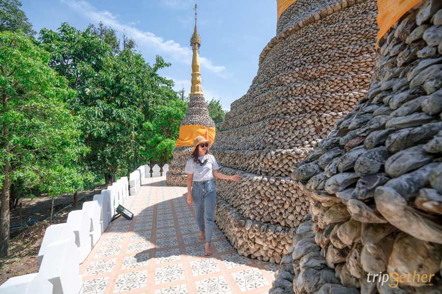 และอีกหนึ่งวัดเก่าแก่สุดอลังการ มาตื่นตากับองค์เจดีย์ที่สร้างจากเปลือกหอยเรียงกันอย่างเป็นระเบียบและสวยงามหนึ่งเดียวในประเทศไทย! ที่ วัดเจดีย์หอย วัดแห่งนี้ถูกสร้างขึ้นเมื่อปี พ.ศ. 2538 โดย ท่านพระครูสุนทร คุณธาดา หรือ หลวงพ่อทองกลึง สุนทโร นอกจากนี้ภายในวัดยังมี พิพิธภัณฑ์ ที่รวบรวมพระพุทธรูป ศิลปวัตถุ โบราณวัตถุ ข้าวของเครื่องใช้เก่าๆ ไม่ว่จะเป็น หอยมือเสือยักษ์ที่ใหญ่ที่สุดในโลก ฆ้องอธิษฐานแค่ลูบก็ส่งเสียงดังกังวาน ตุ่มสามโคก ถ้วยชามดินเผา และไม้แกะสลักอีกด้วย เรียกได้ว่านอกจากจะได้มาทำบุญ ขอพรเสริมศิริมงคลแล้ว ยังได้ชมเรื่องราวทางประวัติศาสตร์ผ่านศิลปวัตถุโบราณอีกด้วย