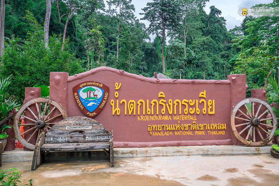 น้ำตกเกริงกระเวีย ตั้งอยู่ในอุทยานแห่งชาติเขาแหลม น้ำตกมีขนาดไม่ใหญ่ สูงประมาณ 5 เมตร ลดหลั่นกันลงมาตามโขดหิน มีแอ่งน้อยใหญ่รองรับน้ำสามารถลงเล่นน้ำได้อย่างปลอดภัย ที่สำคัญมีน้ำไหลตลอดทั้งปี แต่ในช่วงหน้าฝนน้ำค่อนข้างแรง ตัวน้ำตกอยู่ติดถนนแวะง่าย จอดรถแล้วสามารถเดินเข้าไปเล่นน้ำได้สบายๆ ภายในปกคลุมไปด้วยต้นไม้ใหญ่ร่มรื่นสุดๆ ทั้งยังมีทางสะพานไม้ไผ่ทอดตัวยาวเข้าไปยังมุมต่างๆ นอกจากนี้ยังมีร้านอาหารมากมาย สามารถแวะรับประทานหลังเล่นน้ำได้ ทั้งร้านก๋วยเตี๋ยว ร้านส้มตำ อาหารตามสั่ง และคาเฟ่ชิคๆ เป็นอีกหนึ่งที่ที่เมื่อได้มาเยือนทองผาภูมิแล้วต้องแวะเข้ามาชิลล์สักครั้ง
