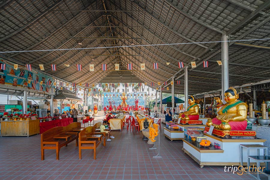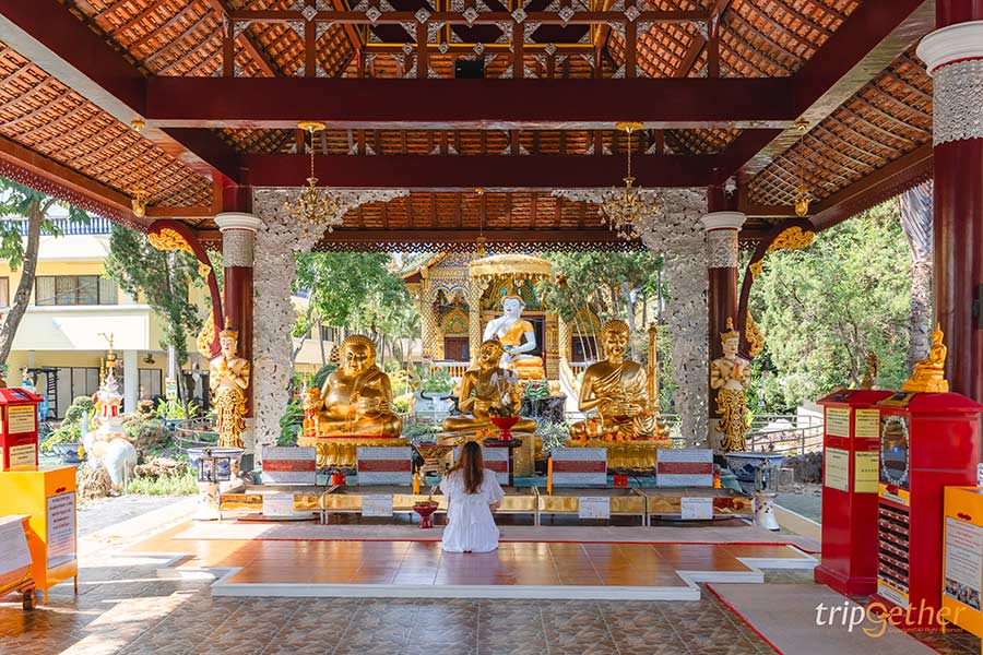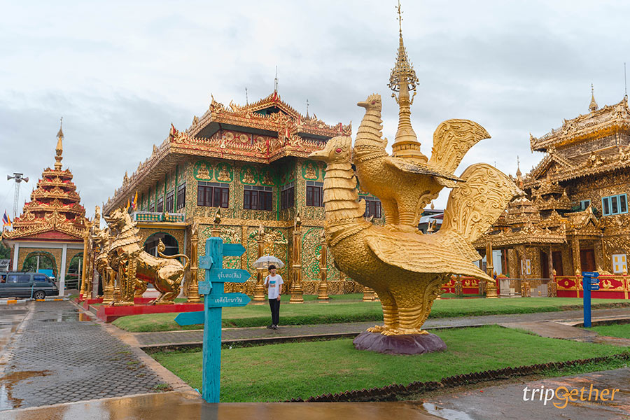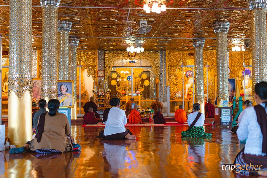 วัดไทยวัฒนาราม วัดสวยสุดตระการตา โดดเด่นด้วยวิหารสีทองที่ฉลุลวดลายศิลปะพม่าอย่างวิจิตร ระหว่างทางยังมีเสาหงส์ทองและรูปปั้นหงส์ทองตัวใหญ่สุดประณีต บอกเลยว่าเป็นวัดที่งดงามมากแห่งหนึ่งเลย ในวัดยังมีพระมหาเมี๊ยะมุนี เทพทันใจ พระพุทธรูปปางไสยาสน์ และพระอุปคุตให้ได้ไหว้ขอพร สำหรับพระอุปคุตที่นี่จะเป็นองค์เล็กอยู่กลางสระน้ำ เป็นเหมือนภาพจำลองตอนพระอุปคุตจำพรรษาอยู่ที่สะดือทะเล บรรยากาศรอบๆ เต็มไปด้วยความเงียบสงบ เหมาะกับการมานั่งอธิษฐานขอพรเรื่องเงินทองสุดๆ