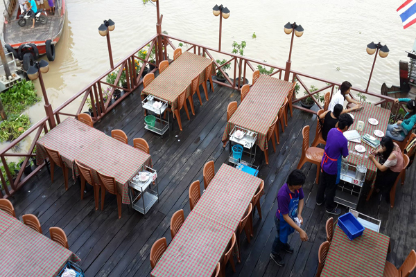 ร้านอาหารไทยรสชาติจัดจ้านริมแม่น้ำเจ้าพระยา ที่ให้บริการในบรรยากาศที่เงียบสงบ มีโซนให้เลือกนั่งทั้งในบ้านแบบเรือนไทย มีระเบียงริมน้ำในเรือเอี้ยมจุ๊น และบริการล่องเรือชมเกาะพร้อมกับรับประทานอาหาร ส่วนตัว 4-5 คน และใช้เวลา 2 ชั่วโมง และยังรวมถึงรับจองเป็นหมู่คณะทั้งที่ทานในร้านและล่องเรือซึ่งรับได้มากถึง 200 คนทีเดียว ในส่วนของเมนูที่ห้ามพลาดก็เป็น กุ้งแม่น้ำเผาตัวโต ๆ ที่คัดมารอไว้มากมาย ย่างจนสุกได้ที่ แกะเปลือกจิ้มกับน้ำจิ้มรสเด็ด นอกจากนี้ยังมีเมนูปลาช่อนเผา เสิร์ฟพร้อมน้ำจิ้ม 3 อย่าง, หมี่กรอบชาววัง, น้ำพริกมะขาม และต้มโคล้งปลาสลิด และอื่นๆ ให้เลือกรับประทานอีกเพียบ
