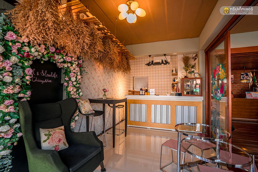 ซิต แอนด์ สโลว์ไลฟ์ คาเฟ่ คาเฟ่สุดสโลว์ไลฟ์สมชื่อตั้งอยู่ที่เดียวกับ เดอะ รอยัล เชียงคาน บูติก โฮเทล ตัวร้านตกแต่งด้วยไม้ดีไซน์สุดชิคประดับประดาไปด้วยดอกไม้ได้อย่างน่ารัก อีกทั้งยังโดดเด่นด้วยบานหน้าต่างกระจกหน้าร้านที่สามารถสั่งเครื่องดื่มอร่อยๆ มานั่งจิบพร้อมชมบรรยากาศสุดสโลว์ไลฟ์ของเมืองเชียงคาน สำหรับเมนูเครื่องดื่มที่อยากแนะนำเลยก็คือ เฟรช อเมริกาโน่ และโกโก้ อเมริกาโน่ นอกจากนี้แล้วยังมีเมนูชา กาแฟ และอิตาเลียนโซดาอีกด้วย