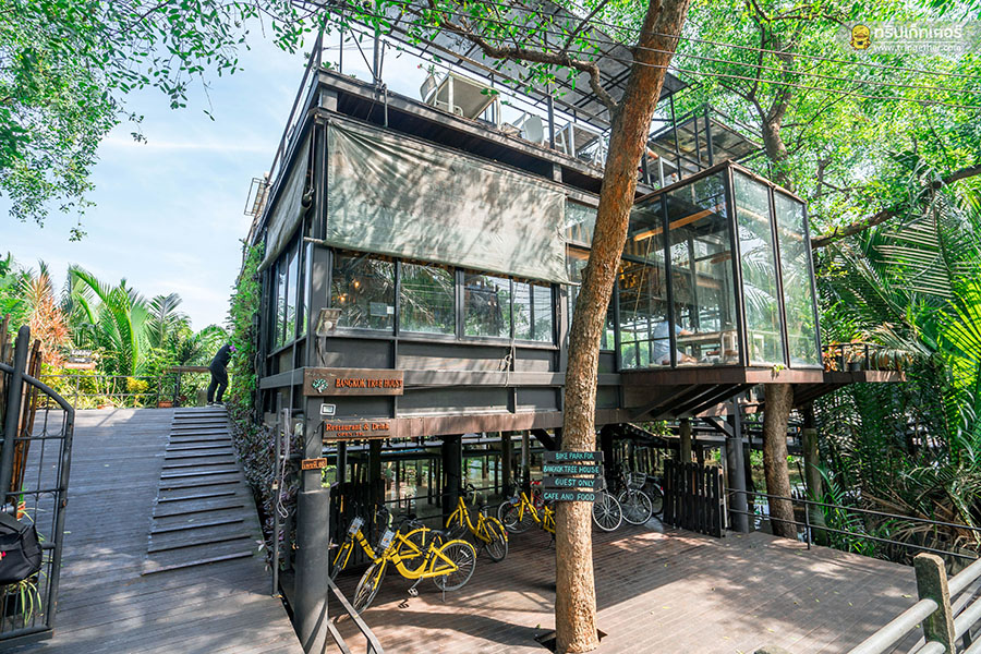 สถานที่อันเขียวขจีแบบใกล้กรุงเทพ เดินทางง่ายๆ สามารถหนีความวุ่นวายในเมืองกรุงมานั่งชิลล์สัมผัสธรรมชาติได้ที่ Bangkok Tree House สถานที่ที่เป็นทั้งคาเฟ่และร้านอาหารสุดร่มรื่นให้คุณชวนเพื่อนชวนคนที่บ้านมานั่งดื่มด่ำบรรยากาศผ่อนคลายด้วยตัวร้านที่มีดีไซน์เก๋ ทันสมัยสามารถสร้างสรรค์ตัวร้านให้อยู่กับธรรมชาติได้อย่างลงตัว ด้วยธรรมชาติที่โอบล้อม ทั้งป่า น้ำ และสายลมที่พัดผ่านตลอดเวลา ตัวร้านมีโซนให้เลือกนั่งได้ทั้งอินดอร์และเอ้าท์ดอร์บนดาดฟ้าให้ได้นั่งใกล้ชิดกับธรรมชาติสูดอากาศบริสุทธิ์ พร้อมเสิร์ฟอาหารไทยสไตล์ฟิวชั่นผสมผสานวัฒนธรรมของทั้งสองชาติได้อย่างลงตัวจนได้เมนูเด็ดของร้านอย่าง สปาเก็ตตี้ผัดไทย รสชาติเข้มข้นเข้ากันได้เป็นอย่างดี นอกจากนี้ยังมีสะพานยื่นตัวไปบนน้ำให้สามารถออกไปยื่นถ่ายรูปสวยๆ ได้อีกด้วย