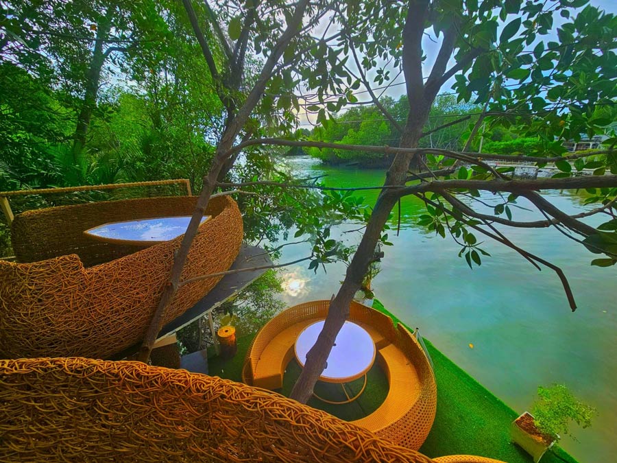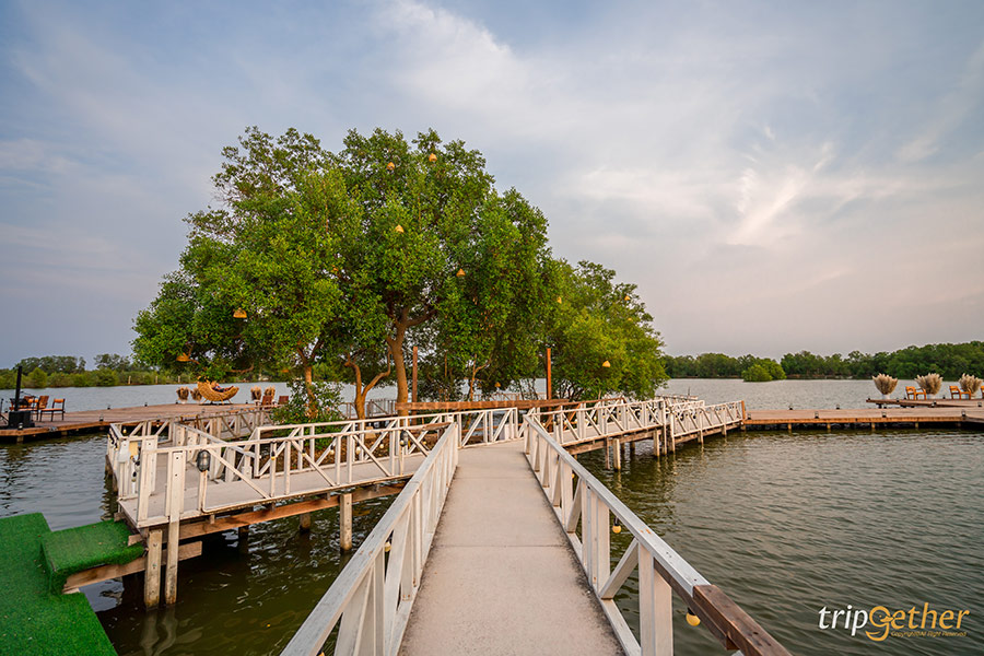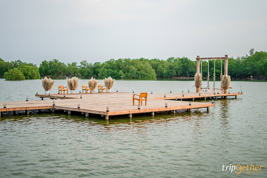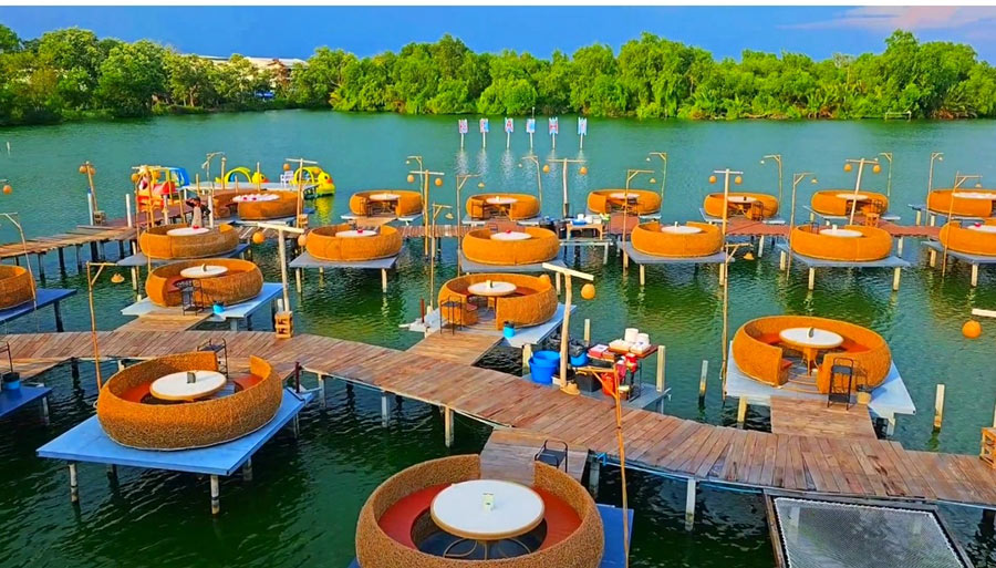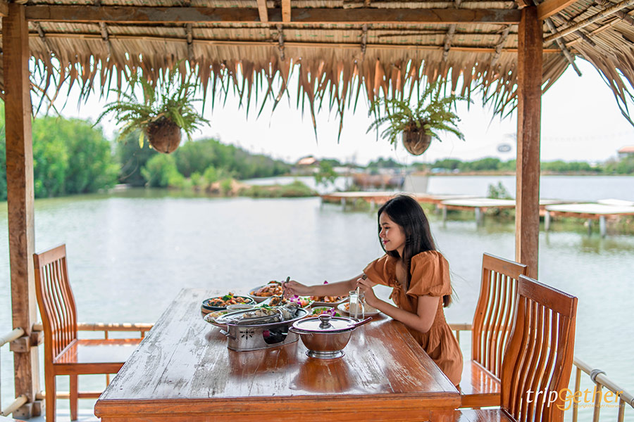 ครัวยุพินซีฟู้ด ร้านอาหารซีฟู้ดกลางน้ำบรรยากาศสุดโรแมนติก บริเวณร้านกว้างขวาง สามารถรองรับลูกค้าได้จำนวนมาก เพราะมีทั้งที่นั่งโซนในอาคารและซุ้มที่นั่งกลางน้ำกว่า 31 ซุ้ม แบ่งเป็นซุ้มที่นั่งแบบเก้าอี้และซุ้มแบบนั่งพื้น จุดไฮไลท์ของทางร้านคือสะพานสีขาวที่ทอดยาวกลางน้ำ เป็นทางเดินที่เชื่อมแต่ละซุ้มที่นั่งและเมื่อเดินไปเรื่อยๆ จะพบกับเกาะกลางที่มีต้นแสมตั้งตระหง่านอยู่กลางน้ำ ให้ความร่มรื่นและเป็นจุดเช็คอินที่ห้ามพลาดเลย อีกทั้งตามจุดต่างๆ ของร้านมีพร็อพเตรียมไว้สำหรับถ่ายรูปสวยๆ ใกล้ชิดธรรมชาติจำนวนมาก เอาใจสายโซเชียลสุดๆ ในช่วงเย็นบรรยากาศก็ยิ่งดีขึ้นไปอีก ทางร้านมีประดับไฟมากมายและดนตรีสด ช่วยเพิ่มความโรแมนติกให้กับบรรยากาศยามค่ำคืนมาก สำหรับเมนูแนะนำคือเมนูยำไข่แมงดา น้ำยำรสชาติจี๊ดจ๊าดกินกับไข่แมงดามันๆ เคี้ยวเพลินๆ นัวอย่างที่สุด ถ้าใครไม่เคยกินต้องลองชิมสักครั้งเลย และใครสายกุ้งแม่น้ำเผาก็อย่าลืมสั่งกุ้งแม่น้ำตัวใหญ่ๆ มันกุ้งเยิ้มๆ จิ้มกับน้ำจิ้มซีฟู้ด แซ่บมากอย่าบอกใครเลย มองหาร้านอาหารทะเลวัตถุดิบคุณภาพดี บรรยากาศหลักล้านจับมือคนรักแล้วมาที่ร้านครัวยุพินซีฟู้ด บางขุนเทียนชายทะเล