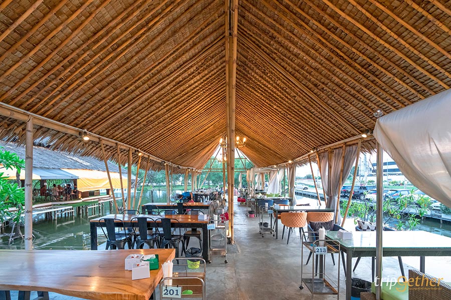 ธารทะเลซีฟู้ด ร้านอาหารทะเลที่มีบรรยากาศให้เลือกหลากหลาย ด้วยที่นั่งที่มีด้วยกันถึง 8 โซนที่สามารถเลือกได้ตามต้องการ ไม่ว่าจะเป็นโซนเรือคายัค กรงนก ซุ้มบาหลี โมเดิร์นเปลตาข่าย ที่นั่งลานดนตรีสด หรือที่นั่งเอาท์ดอร์ก็มีให้เลือกทั้งแบบนั่งพื้นและเก้าอี้ โดยแต่ละโซนก็มีการตกแต่งและให้ฟีลที่แตกต่างกันไป แต่ที่มีเหมือนกันคือทุกที่นั่งจะเน้นความใกล้ชิดกับธรรมชาติ นั่งกินข้าวริมน้ำ บรรยากาศชิลล์ๆ และที่สำคัญทางร้านยังมีกิจกรรมอื่นๆ ให้ทำด้วย อย่างพายเรือคายัคฟรี หรือใครชอบถ่ายรูปก็ต้องเลิฟเพราะที่ร้านมีจุดถ่ายรูปเยอะเลย สำหรับกลุ่มลูกค้ามีตั้งแต่รุ่นคุณพ่อแม่จนถึงกลุ่มวัยรุ่นเลยทีเดียว เรียกได้ว่าเป็นร้านที่เหมาะสำหรับทุกวัยจริง ในส่วนของอาหารทะเลทางร้านใส่ใจในเรื่องของวัตถุดิบ เน้นอาหารที่สดและคัดเลือกวัตถุดิบมาจากหลายที่โดยเน้นเฉพาะของขึ้นชื่อ อย่างยำหอยใหญ่ไข่แดงก็เป็นไข่แดงเค็มจากสุราษฎร์ธานี หมึกของทางร้านก็เป็นหมึกที่ตกเอง รับประกันความหวานกรอบอร่อย ส่วนเมนูใหม่ที่ต้องลอง จักจั่นทะเลผัดฉ่าที่สั่งตัวจักจั่นทะเลตรงมาจากภูเก็ต คล้ายๆ ปู รสชาติมันๆ กรอบๆ ต้องลองเลย ร้านธารทะเลซีฟู้ดเป็นมากกว่าร้านอาหารแต่เหมือนที่ที่เหมาะกับการใช้เวลามาพักผ่อนกับคนรัก จดไว้ในลิสต์แล้วรีบชวนกันมาเลย
