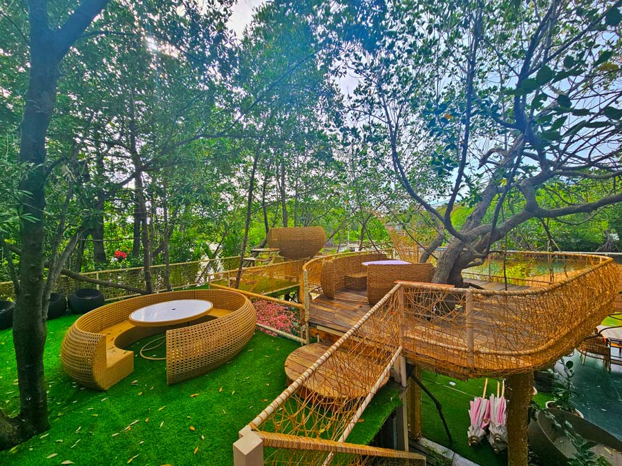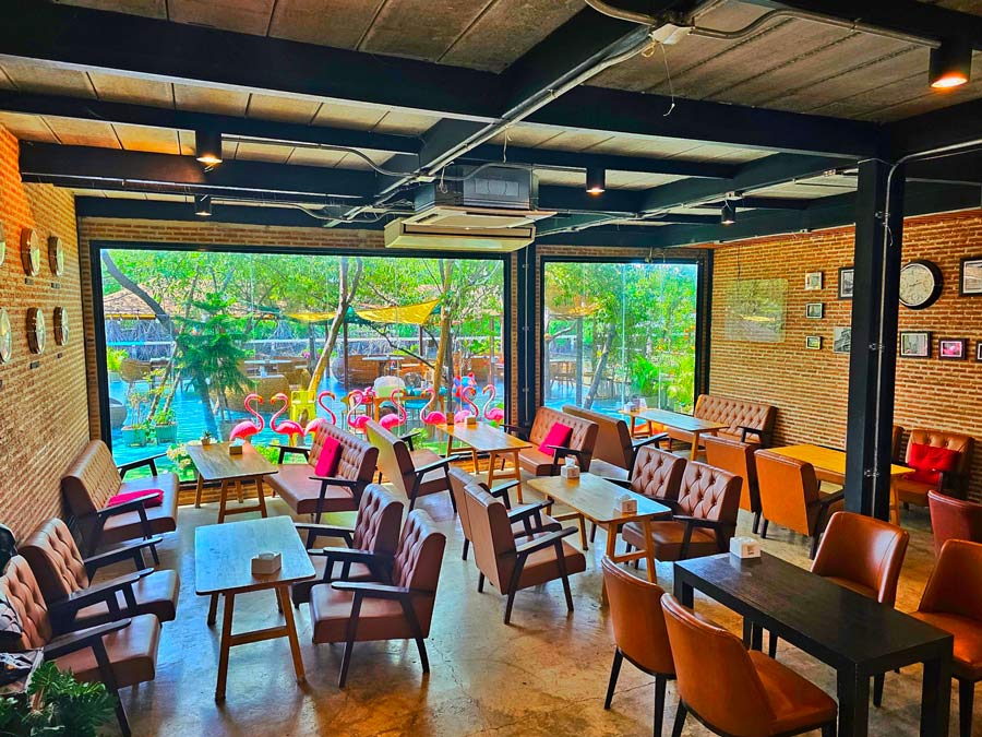 Beachy Cafe (บีชชี่คาเฟ่) คาเฟ่มีดนตรีสดสไตล์มัลดีฟส์หลากหลายด้วยอาหารทะเล อาหารไทย อาหารจีน อาหารฝรั่ง คาเฟ่กาแฟ ของหวานมากมาย มาแล้วให้ฟีลเหมือนได้อยู่ชายทะเลมัลดีฟส์ ฟังเพลงชิลล์ๆ บนเกาะส่วนตัวท่ามกลางทะเลสาบส่วนตัวกว่า 40 ไร่ มีดนตรีสดทุกวัน สนุกกับวงโฟล์คจัดเต็มถึงสี่คนมีแซกโซโฟน ตามด้วยฟูลแบนด์เต็มวง ที่นั่ง private โซนรังนกกลางน้ำ โซนซุ้มกลางน้ำ ห้องส่วนตัวติดแอร์ ห้องคาราโอเกะกินเลี้ยงกระจกรอบทิศเห็นวิวทะเลสาบแบบพาโนรามา