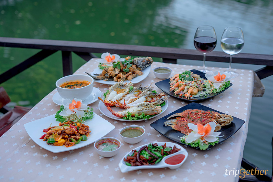 มานั่งชิลล์ริมแม่น้ำกันต่อที่ ร้านอาหารเรือนสายน้ำ ร้านอาหารไทยพื้นบ้านที่การันตีความอร่อยมากกว่า 12 ปี ตัวร้านเป็นบ้านไม้เรียบง่าย มีบรรยากาศของความอบอุ่นและสบายๆ บวกกับอยู่ติดริมน้ำ ทำให้มีลมพัดเข้ามาในร้านตลอด บรรยากาศดีๆ ก็ต้องมาคู่กับเมนูอร่อยๆ ใครที่มาก็แนะนำกุ้งแม่น้ำเผาตัวโตๆ และเมนูอาหารไทยดั้งเดิมอย่าง ปูหลน สะตอผัดกะปิกุ้ง ยำสะเดา เขียวหวานเนื้อผัดแห้ง ต้มยำปลาม้า ปลาดุกฟูผัดพริกขิง บอกเลยว่าเป็นร้านที่เหมาะกับการพาที่บ้านมากินมาก