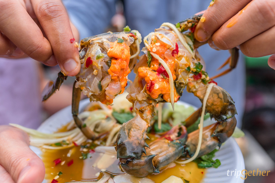 เจ๊ดา กั้งไข่ดอง – ปูไข่ดอง ร้านปูไข่ดองรสชาติสุดแซ่บที่เปิดขายมานานกว่า 50 ปี ตั้งอยู่ที่ตลาดเยาวราชเก่า ปากซอยเยาวราช 11 หน้าร้านทองทองใบ สังเกตป้ายร้านสีแดงๆ ไว้เลย ใครเป็นสายของกินปูไข่ดองบอกเลยว่าร้านนี้เด็ดจริง ปูไซส์ใหญ่มีไข่ทุกตัวกินกับน้ำจิ้มสูตรเด็ดของทางร้านรับประกันความแซ่บ เมนูอื่นๆ ก็มีให้เลือกไม่ว่าจะ กั้งไข่ดอง หอยดอง หอยแครงดอง กุ้งดอง และปูม้าดอง ร้านนี้ใครเป็นสายอาหารดองต้องไปลงให้ได้ เด็ดจริงคอนเฟิร์ม