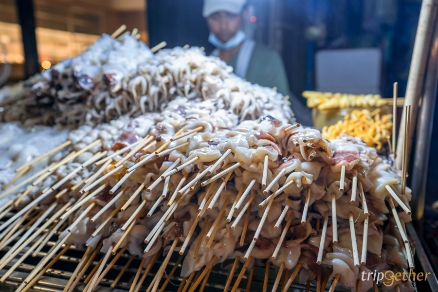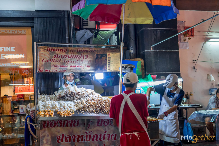 ต่อกันที่ร้านแซ่บๆ อย่าง น้องกาย & น้องเก้า ปลาหมึกย่าง ร้านปลาหมึกย่างเจ้าดังของเยาวราชที่ทางร้านรับประกันความสดใหม่ทุกวัน ที่ร้านมีทั้งหนวดหมึกสาย ไข่ปลาหมึก ปากปลาหมึก เอ็นปลาหมึก หมึกกล้วย หมึกกระดอง ย่างร้อนๆ ราดด้วยน้ำจิ้มสุดแซ่บสูตรเด็ดของร้าน ใครชอบกินหมึกย่างต้องมาลองร้านนี้เลยเด็ดจริง ไม่เสียดายเวลาที่ต่อคิวแน่นอน