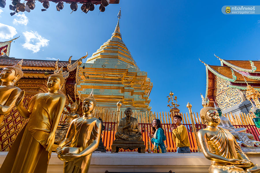 วัดพระธาตุดอยสุเทพ เป็นวัดที่เมื่อได้มาเที่ยวเชียงใหม่จะต้องขึ้นไปเที่ยวชมไม่อย่างนั้นจะถือว่ามาไม่ถึง! เพราะวัดพระธาตุดอยสุเทพ อยู่คู่เมืองเชียงใหม่มาอย่างช้านานแล้ว ตัววัดตั้งอยู่บนดอยโดยระยะทางก่อนที่จะไปถึงวัดจะต้องผ่านอนุสาวรีย์ครูบาศรีวิชัย มองเห็นวิวตัวเมืองเชียงใหม่ ประมาณ 11 กิโลเมตรจากเชิงดอย เมื่อถึงแล้วจะต้องเดินขึ้นบันไดไปอีก 300 ขั้น ก็จะถึงตัววัด หรือหากใครไม่สะดวกเดินเท้าขึ้นไป ที่นี่ก็มีบริการกระเช้าขึ้นลงอีกด้วย นอกจากนักท่องเที่ยวจะนิยมขึ้นไปสักการะบนวัดพระธาตุดอยสุเทพแล้ว ข้างบนนั้นยังสามารถมองเห็นวิวทิวทัศน์เมืองเชียงใหม่ได้อย่างสวยงาม และในทุกๆ ปีจะมีงานประเพณี เดินขึ้นดอยเพื่อไปสักการะวัดพระธาตุดอยสุเทพ โดยจะจัดก่อนวันวิสาขบูชา 1 วัน