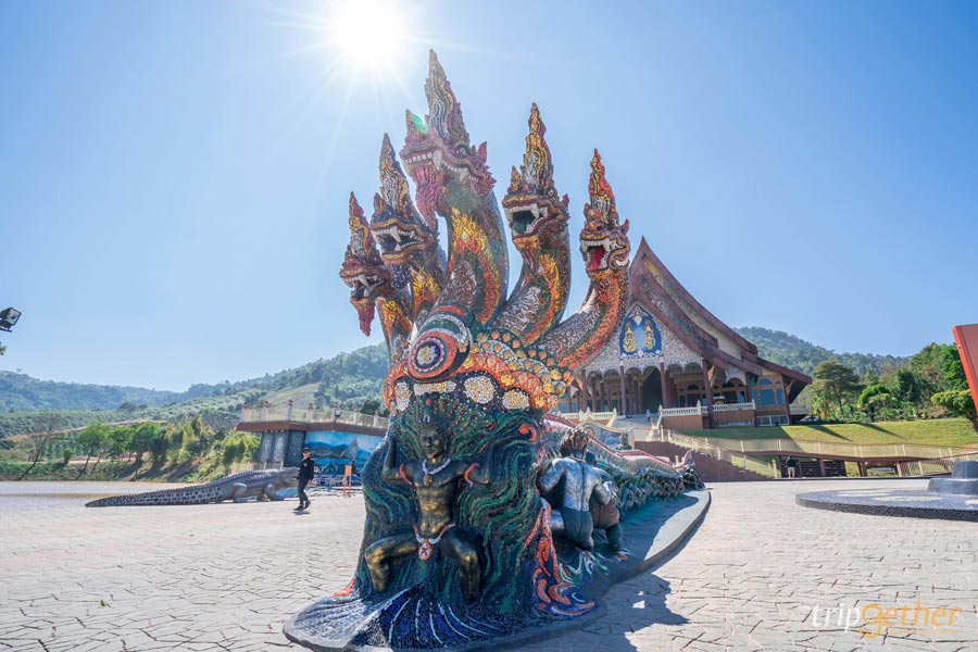 มาเริ่มกันที่ วัดป่าห้วยลาด วัดดังเมืองเลย โดยวัดป่าแห่งนี้ ตั้งอยู่ที่อำเภอภูเรือ ถือเป็นสถานที่ท่องเที่ยวห้ามพลาดเด็ดขาดเมื่อมาเยือนที่ภูเรือ ด้วยความงดงามวิจิตรตระการตาของงานประติมากรรมอย่างมากมาย ไม่ว่าจะเป็นรูปปั้น พระตรีมูรติ พระอินทร์ พระพิฆเนศ พญานาค และองค์เทพอีกหลายๆ องค์ อีกหนึ่งไฮไลท์ความสวยงามของที่นี่คือศาลาเฉลิมพระเกียรติที่มีภูเขาสูงเป็ฉากหลัง บอกเลยว่าเป็นภาพที่สวยงามมากๆ