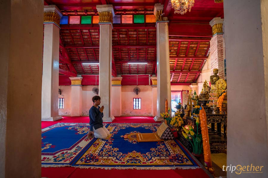 เดินทางเติมแต้มบุญกันต่อที่วัดเก่าแก่ที่อยู่คู่อำเภอเชียงคานมานานกว่า 200 ปี อย่าง วัดท่าคก วัดดังเมืองเลย แห่งนี้เป็นแหล่งรวมศิลปะและวัฒนธรรมอันหลากหลายที่มีความวิจิตรสวยงาม เป็นที่ประดิษฐานพระพุทธรูปปางมารวิชัยขนาดใหญ่อยู่ภายใต้เจดีย์วัดที่ชาวเชียงคานเคารพบูชามาช้านาน นอกจากนี้ที่บริเวณหน้าโบสถ์ยังมีศิลาจารึกที่เล่าถึงเรื่องราวการสร้างวัด ที่เขียนด้วยตัวอักษรธรรมอีสานเอาไว้ด้วย