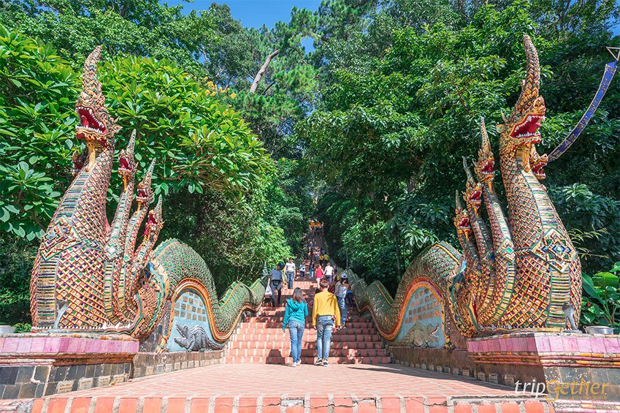 วัดพระธาตุดอยสุเทพราชวรวิหาร พระอารามหลวงชั้นโท ชนิดราชวรวิหาร เป็นอีกหนึ่งวัดชื่อดังของชาวเชียงใหม่ที่ใครมาต้องนึกถึงเป็นอันดับต้นๆ ตั้งอยู่บนอุทยานแห่งชาติดอยสุเทพ – ปุย อยู่สูงจากระดับน้ำทะเล 1,046 เมตร ซึ่งก่อนจะถึงตัววัดจะต้องผ่านอนุสาวรีย์ครูบาศรีวิชัย ซึ่งเป็นที่เลื่อมใสของคนเชียงใหม่อย่างมาก ตัววัดก่อสร้างตามแบบศิลปะล้านนา มีเจดีย์ทรงเชียงแสน ฐานสูงย่อมุมระฆังทรงแปดเหลี่ยมปิดด้วยทองจังโก 2 ชั้น ลานเจดีย์เป็นจุดชมทิวทัศน์เมืองเชียงใหม่ได้แบบ 360 องศา
