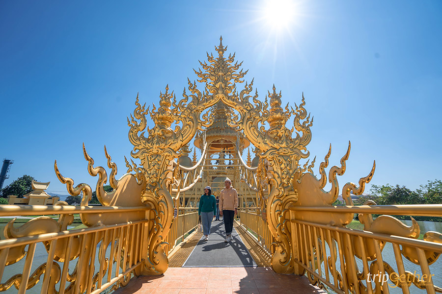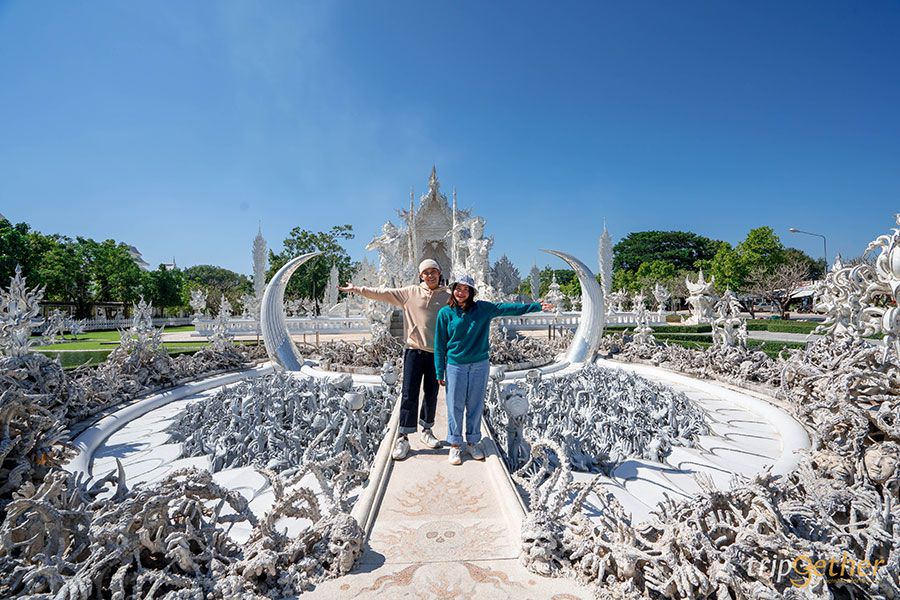 วัดชื่อดังที่เรียกได้ว่าเป็นแลนด์มาร์กอีกแห่งหนึ่งของเชียงรายที่มีนักท่องเที่ยวทั้งชาวไทยและชาวต่างชาติแวะเวียนเข้ามาชมความสวยงามอยู่เสมอ ก็คือ วัดร่องขุ่น วัดสีขาวที่มีประติมากรรมปูนปั้นสุดวิจิตรบรรจงสร้างสรรค์ขึ้นโดย อ.เฉลิมชัย โฆษิตพิพัฒน์ ศิลปินแห่งชาติฯ ไฮไลท์คือวิหารสีขาวที่ต้องเดินข้ามสะพานที่ได้จำลองห้วงนรก โดยมีมือนับร้อยยื่นขึ้นมา นอกจากนี้ยังมีมุมถ่ายรูปอื่นๆ ที่เป็นประติมากรรมที่มช้สีทองอร่ามให้ได้ถ่ายเช็คอินกันอีกด้วย