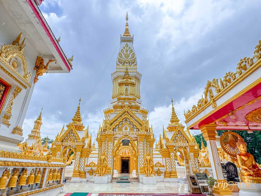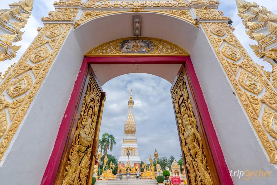 เดินทางไปต่อกันที่ วัดพระธาตุพนมวรมหาวิหาร แลนด์มาร์กศักดิ์สิทธิ์อันดับหนึ่งของชาวอีสานที่ทุกคนควรมาสักการะสักครั้งในชีวิต พระธาตุพนมประดิษฐาน พระอุรังคธาตุ หรือ พระธาตุส่วนอกขององค์พระสัมมาสัมพุทธเจ้า นอกจากนี้เป็นพระธาตุประจำปีเกิดของผู้ที่เกิด ปีวอก และประจำวันเกิดของผู้ที่เกิด วันอาทิตย์ ไฮไลท์คือเจดีย์สีขาวทองอร่ามที่สวยงาม สง่า และเปล่งประกายรับแสงแดด เป็นจุดรวมใจของผู้คนจากทั่วสารทิศที่หลั่งไหลมาขอพรไม่ขาดสาย