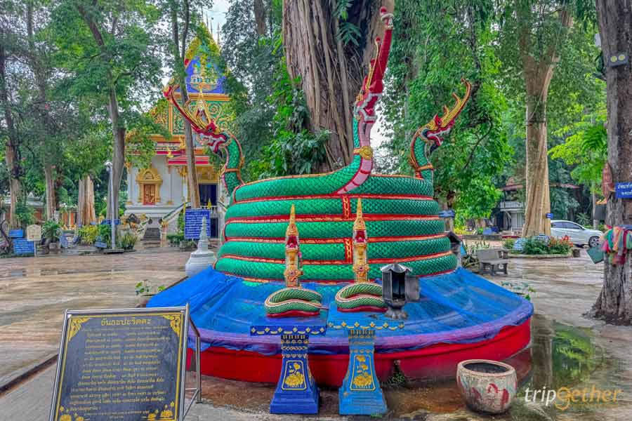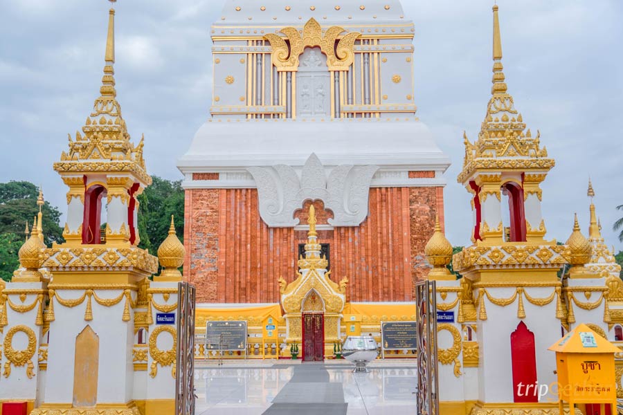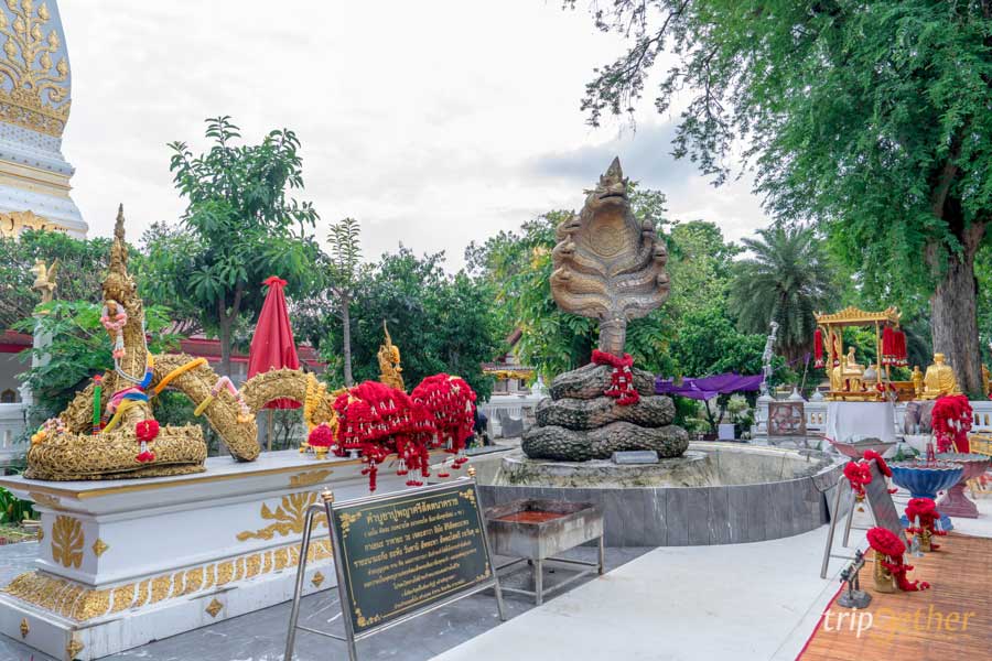 ปิดท้ายกันที่ วัดพระธาตุหนองบัว วัดคู่บ้านคู่เมืองอุบลราชธานี ภายในวัดประดิษฐาน พระธาตุเจดีย์ศรีมหาโพธิ์ เจดีย์สีขาวทองอร่ามลวดลายสวยงามวิจิตร ที่จำลองแบบมาจากพุทธคยาในอินเดีย เป็นสถานที่บรรจุพระบรมสารีริกธาตุ รอบองค์พระธาตุเป็นกำแพงแก้ว ซึ่งทั้ง 4 มุม ของกำแพงแก้ว ได้ประดิษฐานพระเจดีย์ขนาดเล็กอีก 4 องค์ อีกหนึ่งไฮไลท์ก็คือรูปปั้นพญานาคราชองค์ใหญ่ 2 องค์ คือ ท่านปู่กริชกรกต และท่านย่ามณีเกตุ ที่ประดิษฐานไว้คู่กัน บอกเลยว่าอลังการเป็นที่สุดเลยล่ะ