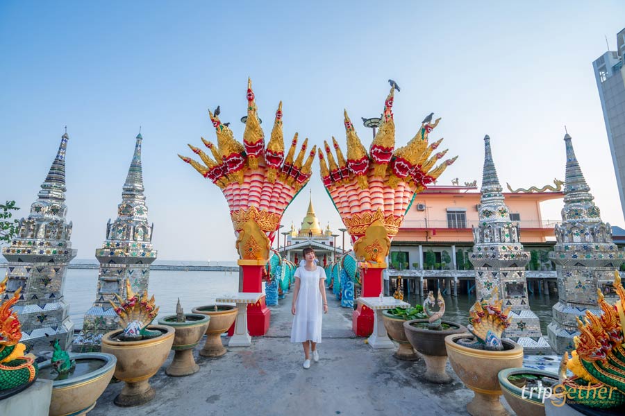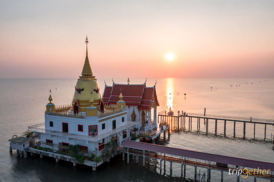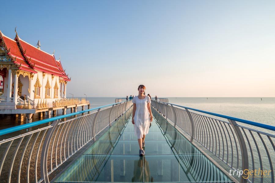ถัดมากับ วัดสวย ใกล้กรุงเทพ จ.ฉะเชิงเทรา หนึ่งในจังหวัดที่มีวัดชื่อดังและวัดสวยจำนวนมาก อย่างเช่น วัดหงษ์ทอง หรือที่ชาวบ้านเรียกติดปากกันว่า วัดกลางน้ำ ถือเป็นอันซีนที่นักท่องเที่ยวสายบุญต่างเดินทางมาชมความงามของ พระอุโบสถ และ พระธาตุคงคามหาเจดีย์กลางน้ำ ที่ภายในมีจิตรกรรมฝาผนังเรื่องราวของพุทธประวัติและภาพวาดของพระมหากษัตริย์ตั้งแต่อดีตถึงรัชกาลปัจจุบัน นอกจากนี้ยังมีสิ่งศักดิ์สิทธิ์ให้ได้กราบไหว้อีกมากมาย ไม่ว่าจะเป็น พระธาตุพระอรหันต์ หลวงพ่อพุทธโสธรจำลอง หุ่นขี้ผึ้งรูปเหมือนจริงของพระมงคลเทพมุนี และพระพุทธชินราชจำลองที่เป็นพระประธานในโบสถ์ ทั้งยังมีไฮไลท์สุดปัง อย่าง Sea Walk ทางเดินกระจกยาว 40 เมตร ยื่นลงทะเลให้เดินชมวิวแบบเต็มๆ ตาอีกด้วยนะ