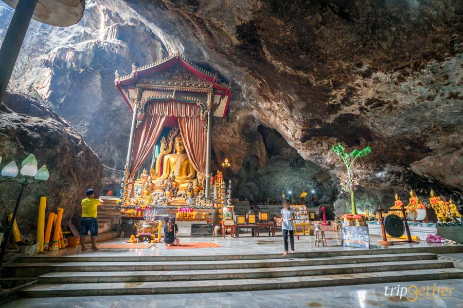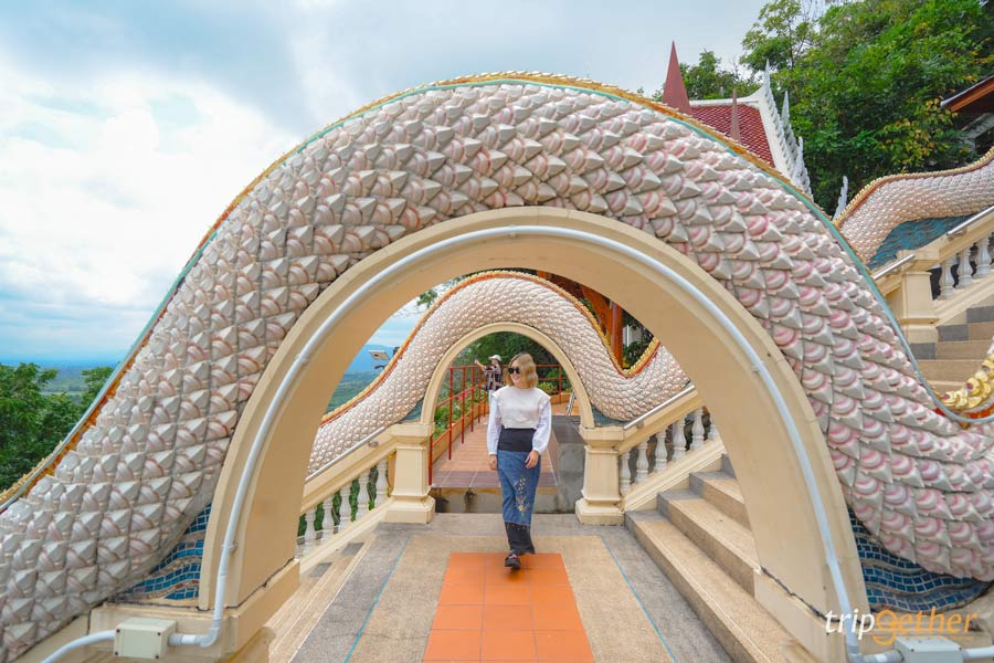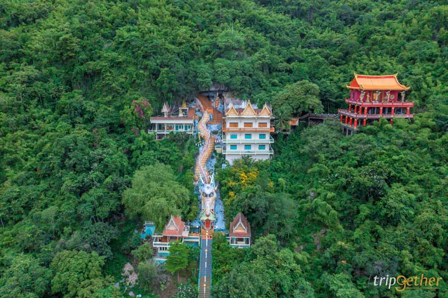 เดินทางเติมแต้มบุญกันต่อที่ วัดบ้านถ้ำ กาญจนบุรี วัดเก่าแก่สุดศักดิ์สิทธิ์ที่หลายคนศรัทธา สร้างในสมัยสุโขทัย ภายในวัดมีถ้ำขนาดใหญ่อยู่ โดยภายในถ้ำนั้น ก็จะมีพระพุทธรูปองค์ใหญ่ปางมารวิชัย สมัยสุโขทัย ชื่อว่า หลวงพ่อใหญ่ชินราช ประดิษฐานอยู่ และสำหรับไฮไลท์ความสวยงามตระการตาของวัดแห่งนี้ คือ ทางขึ้นไปถ้ำเป็นบันไดกว่า 269 ขั้น เป็นลวดลายของนาคและมังกรสวยเด่นอยู่กลางวัดเลย โดยจากนาคไปจนถึงมังกรจะมี 114 ขั้นด้วยกัน และจากหางมังกรเข้าไปถ้ำก็มีอีก 105 ขั้น ไปจนถึงเดินเข้าถ้ำอีก 50 ขั้น และพอขึ้นมาจนถึงด้านบน ก็จะได้พบกับวิวของเมืองกาญจนบุรีและแม่น้ำแม่กลองสวยๆ ใครมาเที่ยวกาญจนบุรี ลองแวะมาเช็คอินที่นี่เลย