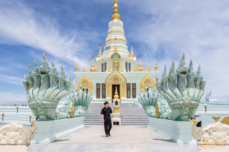มาชมความสวยงามของวัดพระธาตุผาซ่อนแก้ว เขาค้อ วัดสวย ใกล้กรุงเทพ ที่ตั้งอยู่ท่ามกลางม่านหมอกและความเขียวขจี รายล้อมด้วยภูเขาอากาศเย็นสบายเที่ยวกันได้ตลอดทั้งปี! ไฮไลท์ความศักดิ์สิทธิ์ของวัดแห่งนี้ คือ วิหารพระพุทธเจ้า 5 พระองค์ ซึ่งเป็นพระพุทธรูปสีขาวซ้อนกัน 5 องค์ มีความกว้าง 41 เมตร ยาว 72 เมตร และสูง 45 เมตร ตั้งเรียงลดหลั่นกันบนฐานช่อบัวและกลีบบัวเป็นชั้นดูสวยงามมาก นอกจากนี้ภายวัดมีจุดให้ทำบุญและไหว้ขอพ รวมถึงมุมถ่ายรูปสวยๆ เพียบ!