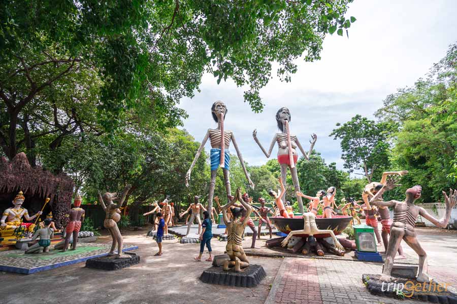 พามาชม วัดสวย ใกล้กรุงเทพ กันที่ วัดแสนสุขสุทธิวราราม ชลบุรี ที่สวยโดดเด่นตั้งแต่บริเวณทางเข้าด้านหน้าที่จะมีรูปปั้นที่เกี่ยวกับสวรรค์นรก เรื่องราวเกี่ยวกับบุญบาป และมีพระมหาเจดีย์เกตุแก้วจุฬามณีอาสนสุขมหาวิหาร ซึ่งบนยอดของพระมหาเจดีย์บรรจุ พระอุรังคธาตุ (กระดูกส่วนอก) ของพระพุทธเจ้า ให้ได้มาสักการะกัน มีพญานาคทุกทางเข้าทั้ง 4 ทิศ ล้อมรอบไปด้วยพญานาค 7 เศียร ที่มีความวิจิตรมาก ใครมาเที่ยวบางแสนหรือชลบุรี แนะนำเลยว่าให้แวะเข้ามาไหว้พระ ถ่ายรูปเป็นที่ระลึก