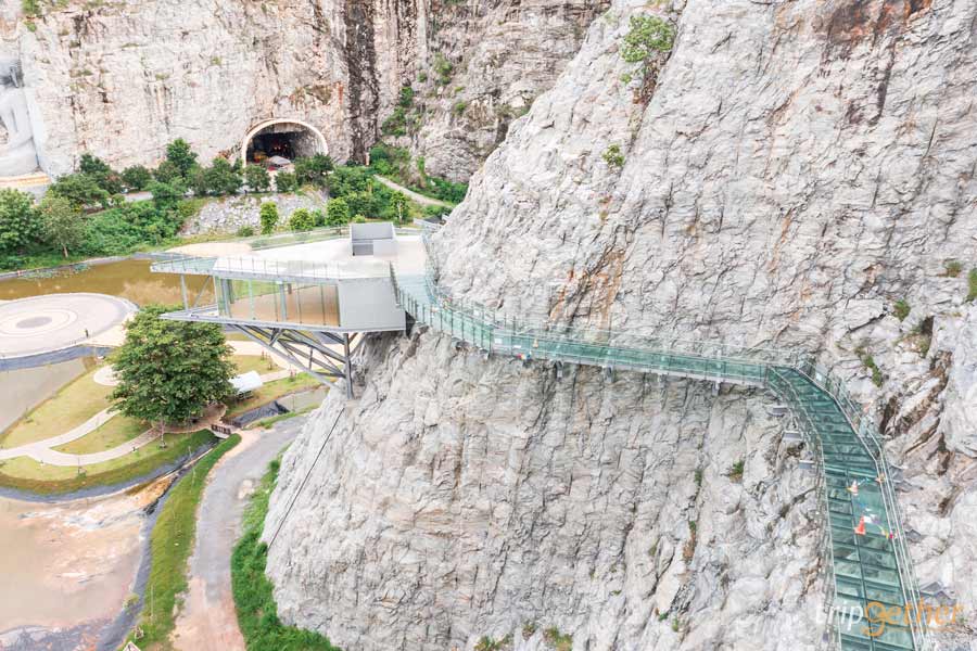 มาต่อกันที่ พุทธมณฑลสุพรรณบุรี หลวงพ่ออู่ทอง ชมความสวยงามพระพุทธรูปแกะสลักหน้าผาหิน มีชื่อว่า พระพุทธรูปปุษยคีรีศรีสุวรรณภูมิ ความสูงกว่า 35 เมตร และเป็นพระพุทธรูปแกะสลักหน้าผาที่ใหญ่ที่สุดในโลกอีกด้วย ถ่ายรูปเช็คอินความอลังเรียบร้อยแล้วอย่าลืมไปไหว้พระขอพร สักการะ พุทธเทวสถานสมเด็จพระพุฒาจารย์โต แหล่งรวมประติมากรรมสิ่งศักดิ์สิทธิ์ ที่สายมูห้ามพลาด และอีกหนึ่งไฮไลท์ของที่นี่คือสกายวอล์ค สะพานกระจกที่จะพาทุกคนได้เดินลัดเลาะไปตามสันเขาไปพร้อมกับชมวิวทิวทัศน์สวยๆ จากมุมสูง