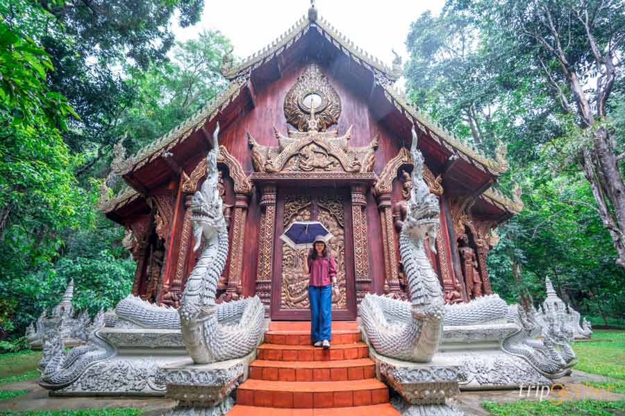 ถัดมาที่ วัดหลวงขุนวิน วัดเก่าแก่โบราณ อายุมากกว่า 700 ปี ตั้งอยู่บนภูเขาท่ามกลางแมกไม้เขียวขจี ตัววัดอยู่ในป่าลึก สามารถเดินทางไปได้ด้วยรถโฟวิลเท่านั้น มีไฮไลท์เป็น อุโบสถไม้สักแกะสลักตามแบบสถาปัตยกรรมล้านนาทั้งหลัง ภายในประดิษฐานพระพุทธรูปไม้แกะสลักปางปรินิพพาน (พระนอน) นอกจากนี้ยังสามารถเยี่ยมชมอุโบสถพระยืนและบันไดพญานาคแกะสลักอย่างงดงาม