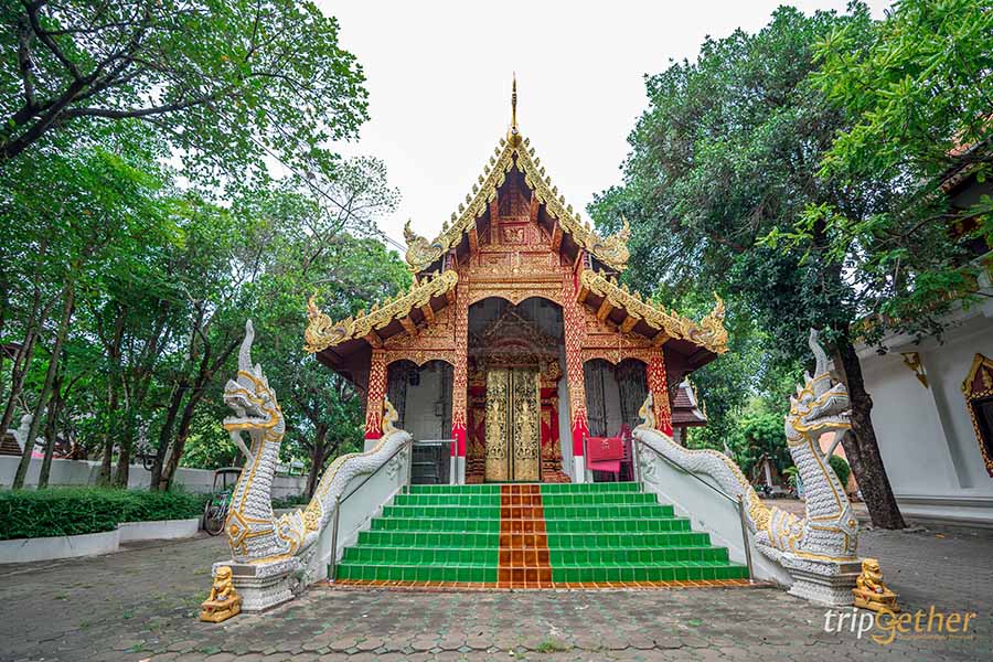 ต่อกันที่ วัดพระสิงห์วรมหาวิหาร วัดขนาดใหญ่ในคูเมืองที่เชื่อว่าใครที่เคยมาเที่ยวเชียงใหม่ หรือมาเที่ยวถนนคนเดินท่าแพ ต้องคนชื่อกับวัดนี้อย่างแน่นอน วัดพระสิงห์เป็นวัดที่เก่าแก่มาตั้งแต่สมัยโบราณ จนกระทั่งครูบาศรีวิชัยได้บูรณะปฏิสังขรณ์วัดพระสิงห์ขึ้นใหม่ ภายในวิหารลายคำหลังใหญ่ที่สร้างตามแบบศิลปกรรมล้านนาเป็นที่ประดิษฐานพระพุทธสิหิงค์เอาไว้ สำหรับใครที่เดินทางมาถึงเชียงใหม่แล้ว ขอแนะนำให้มากราบไหว้ขอพรกันสักครั้ง