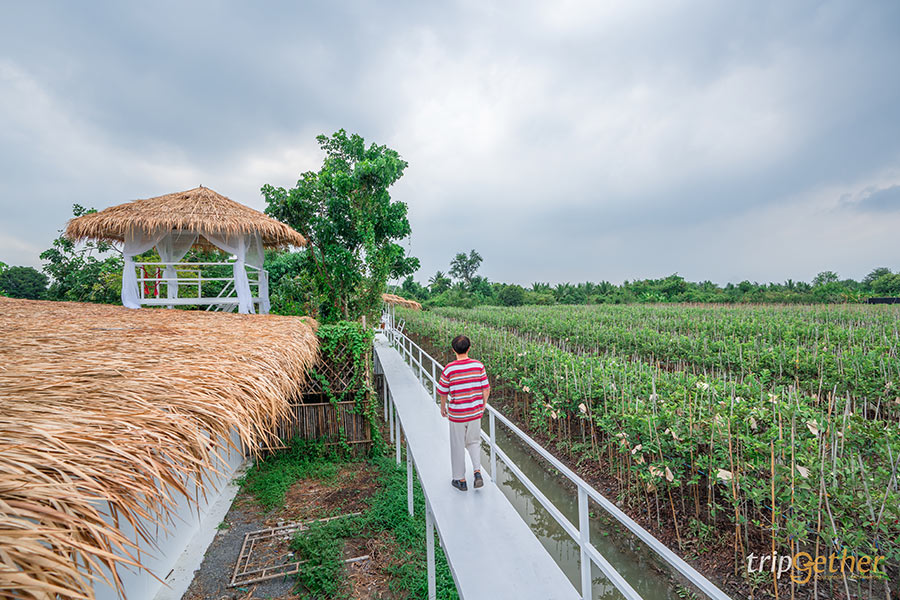 ออกเดินทางสู่จังหวัดสมุทรสาครจุดหมายของทริปในวันนี้กันช่วงสายๆ แล้วไปกินมื้อเที่ยงกันที่ ดีกันคาเฟ่ ร้านอาหารกึ่งคาเฟ่กลางสวนบนพื้นที่กว้างขวาง บรรยากาศร่มรื่นเพราะบริเวณร้านมีต้นไม้ใหญ่มากมายให้ร่มเงา และมีสระน้ำใหญ่และคูน้ำล้อมรอบร้านที่ให้ความรู้สึกสดชื่น เหมาะกับการมานั่งชิลล์จิบกาแฟและเริ่มต้นทริปเป็นที่สุด