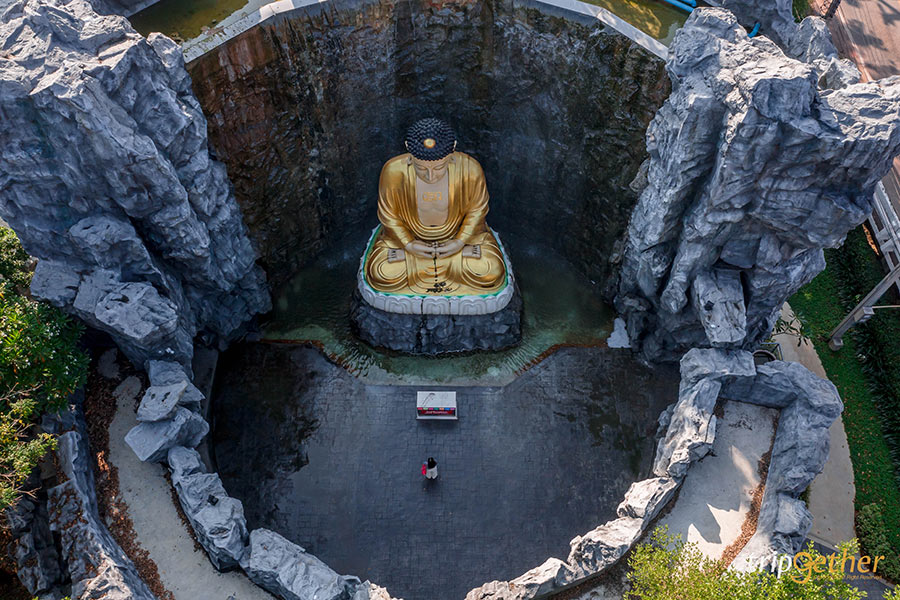 ไฮไลท์ของวัดยังมี อุทยานหลวงพ่อโตมหายาน เป็นประติมากรรมสุดอลังการและสวยงามเป็นอย่างยิ่ง บริเวณโดยรอบยังร่มรื่นเดินชมไปแบบสบายๆ บอกเลยว่าคุ้มค่าและประทับใจแน่นอน