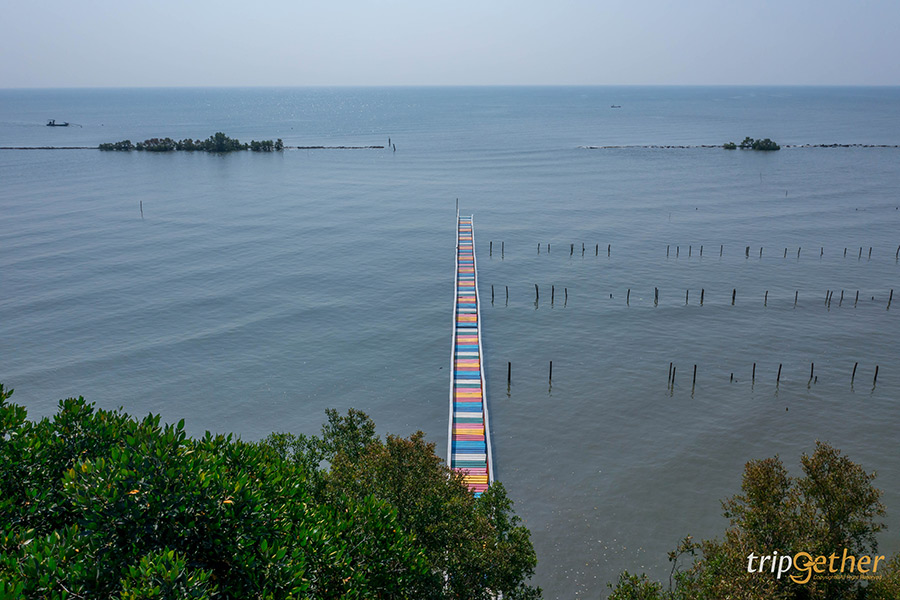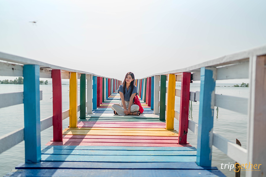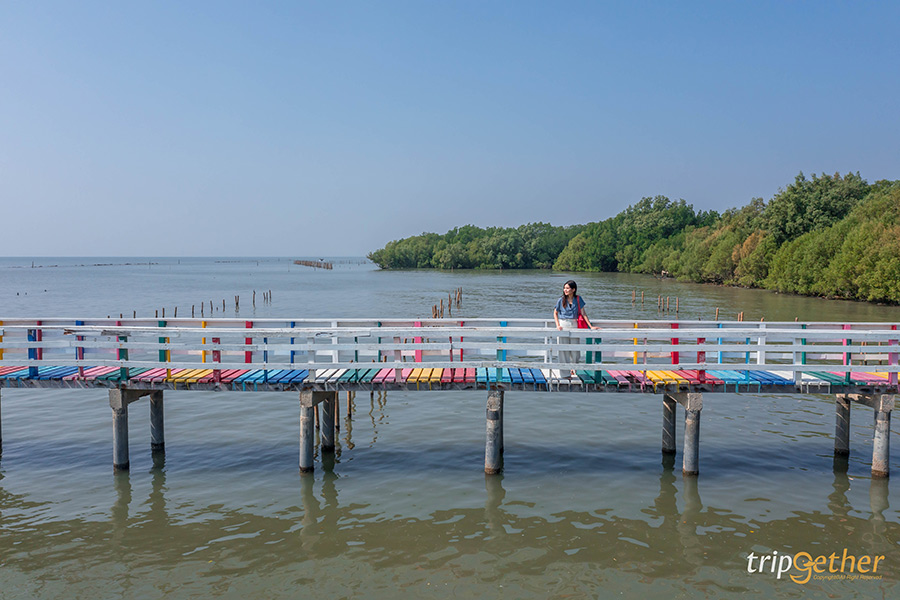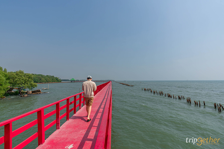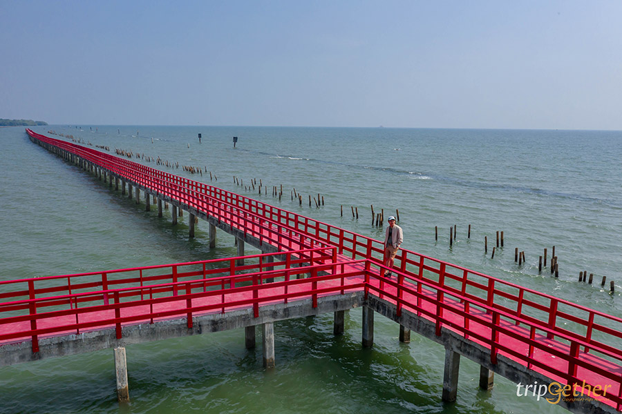 สายถ่ายรูปเช็คอินแบบเราจะเก็บแค่สะพานสายรุ้งเดี๋ยวจะหาว่ามาไม่ถึงสมุทรสาคร สถานที่ต่อไปของเราก่อนกินมื้อเย็นก็คือ สะพานแดง อีกหนึ่งสะพานไม้ทางเดินเลียบริมทะเลชื่อดังที่นิยมมาชมพระอาทิตย์ตกกันนั่นเอง แอบกระซิบเลยว่าช่วงเย็นตอนพระอาทิตย์ตกท้องฟ้าเปลี่ยนเป็นสีส้มที่นี่สวยงามมากๆ เป็นอีกจุดชมวิวพระอาทิตย์ตกใกล้กรุงเทพฯ ที่อยากแนะนำว่ามาเช็คอินกันได้ไม่ผิดหวังแน่นอน