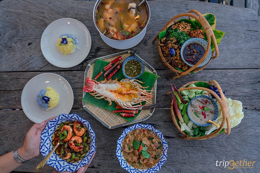 กุ้งแม่น้ำตัวโตมันเยิ้มทีเด็ดของร้าน จะกินเดี่ยวๆ หรือจิ้มกับน้ำจิ้มซีฟู้ดก็ดีงาม มาแล้วต้องสั่งห้ามพลาด! นอกจากนั้นเรายังสั่งแบบจัดเต็มทั้งปูหลน สะตอผัดกะปิกุ้ง ยำสะเดา เขียวหวานเนื้อผัดแห้ง ต้มยำปลาม้า และปลาดุกฟูผัดพริกขิง ซึ่งร้านมีเมนูมากมายให้เลือกกันแบบจุกๆ