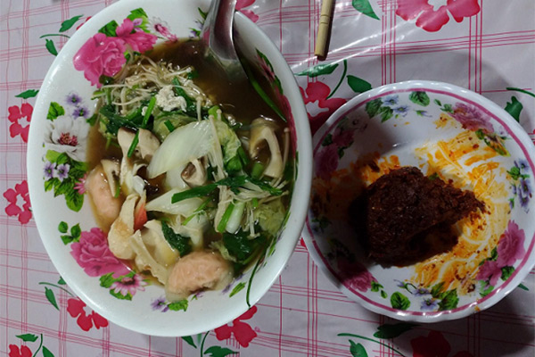 ข้าวเปียก อร่อยมากๆครับ คือคืนแรกที่มาพักคนเยอะมากๆร้านนี้ วันนี้เลยไม่พลาด เห็นฝรั่งนั่งข้างๆใส่พริกแดงเต็มชามเลย ผมเลยเอาพริกเผาใส่ไปบ้างขนาดแค่นิดเดียวยังเผ็ดเลยครับใครไปทานก็ชิมก่อนละกัน