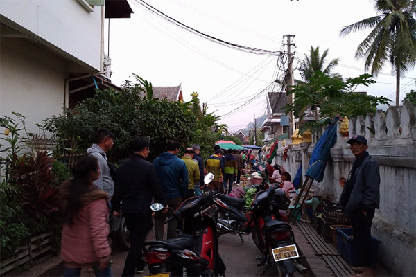 หลังจากตื่นตั้งแต่ ตี 5 เก็บของใส่กระเป๋าเตรียมไว้ก่อนเดินทาง จึงไปใส่บาตรตอนเช้า ตอนแรกกะว่าจะไปใส่ตรงที่เขานิยมใส่กัน(มุมมหาชน)แต่พอไปแล้วคนเยอะมากๆเลยใส่ที่อื่นแทน หลังจากใส่บาตรเสร็จก็ไปเดินตลาดตอนเช้าซึ่งจริงๆแล้ว ก็คงไม่ได้ซื้ออะไร แต่ผมชอบไปดูวิถีชิวิต ดูของกินแปลกๆอยู่แล้วไม่มีพลาด