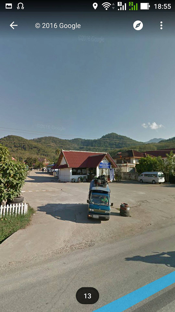19.00 น. จะมาถึงสถานีขนส่งสายใต้ หลวงพระบาง (รูปแคปมาจาก map นะครับตอนนั้นมืดเลยไม่ได้ถ่าย) อย่าสับสนนะครับที่หลวงพระบางมีสถานีขนส่งสายใต้กับสายเหนือซื่งอยู่กันคนละที่ และสายใต้มีสองฝั่งคือ ในประเทศกับระหว่างประเทศ ตอนไปจองตั๋วขากลับรถตุ๊กๆพาไปส่งสายใต้ในประเทศยืนงงต้องนานว่าตอนมามันไม่ใช่ที่นี่นี่หว่า เลยไปถามเจ้าหน้าที่ว่าจะจองตั๋วไปจังหวัดเลย ถึงได้รู้ว่ามาลงผิดฝั่ง