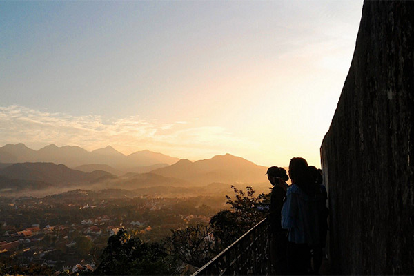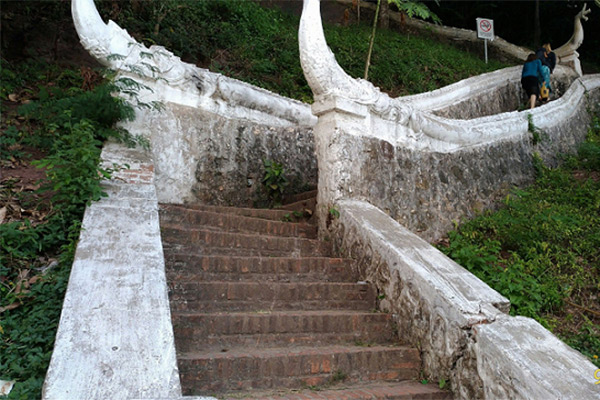 การเดินขึ้นพระธาตุพูสีผมเลือกขึ้นจากทางด้านหลังแล้วไปลงด้านหน้า เพราะจะได้เห็นทิวทัศน์ทั้ง 2 ทางและการไปลงด้านหน้านั้นจะได้เที่ยวตลาดมืดต่อเลยครับ