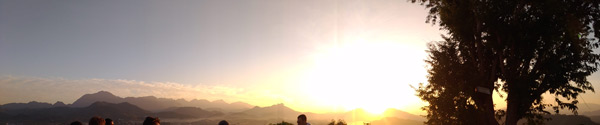 เดินเล่นในเมืองเสร็จก็กลับเข้าที่พักอาบน้ำ ตอนแรกกะจะรีบนอนเพราะต้องตื่นแต่เช้าแต่ว่านอนไม่หลับ เลยต้องออกมาหาอะไรกินกลางดึก ก่อนนอนมีอาการเหมือนจะเป็นไข้เพราะอากาศหนาวมาก เลยกินยาไว้ก่อนนอน ตั้งนาฬิกาปลุกไว้ตอนตี 4 แต่ตอนตื่นมายังรู้สึกเหมือนจะเป็นไข้ตอนนั้นเริ่มสองจิตสองใจแล้วว่าจะขึ้นไปดีไหมเพราะไปคนเดียว ถ้าเกิดเป็นอะไรขึ้นมาจะทำอย่างไร นอนคิดอยู่ครึ่งชั่วโมงเลยตัดสินใจไป แต่ตั้งใจไว้ว่าจะค่อยๆไปถ้ารู้สักไม่ไหวหรือมีอาการไม่ดีจะต้องกลับลงมาทันที การขึ้นไปบนจุดชมวิวต้องเตรียมไฟฉายไปด้วยนะครับให้เตรียมไปจากไทยดีที่สุดเพราะถูกกว่าไปซื้อที่นั่น ผมเตรียมเสื้อกันฝนเผื่อไปด้วยครับเพราะกลัวฝนตก และกาแฟกระป๋องแล้วก็ขนมอีกหลายอย่าง ตี 5 เดินไปมืดๆเลยครับไฟริมทางก็ไม่มีต้องใช้ไฟฉายส่องไป เราจะเสียค่าเข้า 20,000 กีบ ตอนที่ถึงลุงบอกมีฝรั่งขึ้นไปแล้ว 5 คน ตอนแรกกะว่าจะมาเอาคนแรกสักหน่อย พอเดินไปเรื่อยๆทางไม่ค่อยชันมากเท่าไหร่เดินค่อนข้างง่าย แต่มืดมากๆ มองไม่เห็นอะไรเลยนอกจากไฟฉายส่อง เดินไปได้แค่ 20 นาทีรู้สึกร้อนมากๆต้องรูดซิปเสื้อกันหนาวออกเลยครับ ไข้ก็หายไปเลยสงสัยไข้แตก ทางจะมาชันแค่ช่วงท้ายนิดเดียวเท่านั้นที่ต้องปีนโขดหิน