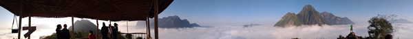 ตอนแรกกะว่าจะอยู่จนกว่าหมอกจะจางจนเห็นเมืองข้างล่าง ปรากฎว่า 9.30 น.แล้วหมอกยังไม่มีทีท่าว่าจะจางมีแต่ดันตัวขึ้นสูงขึ้นเรื่อยๆเลยรีบลงมาก่อนเพราะกลัวไม่ทันรถเที่ยว 11.00 น.
